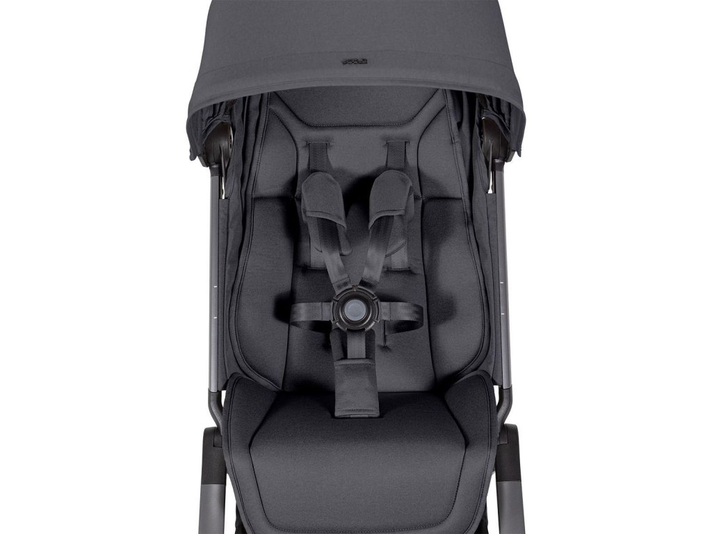 Kočárek je vhodný od narození až do 22 kg a nabízí ergonomické, plně polohovatelné sedadlo s možností úplného lehu.