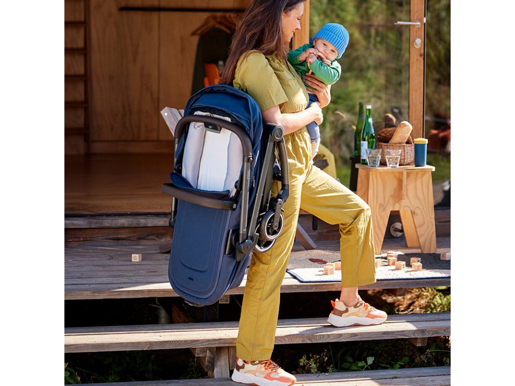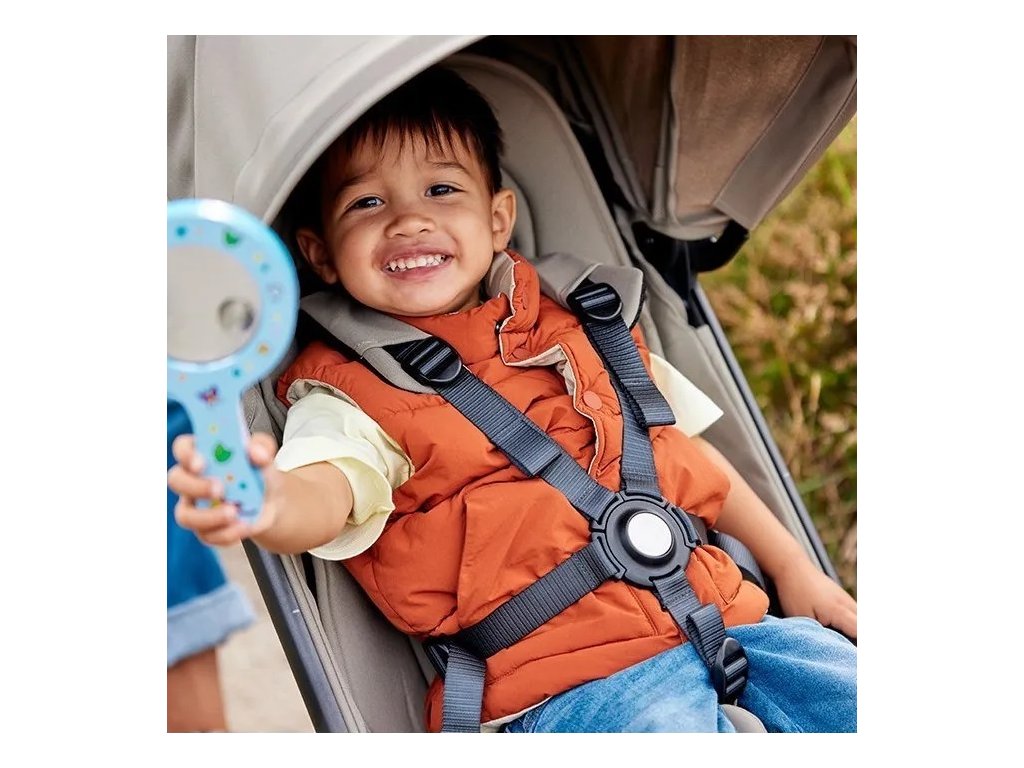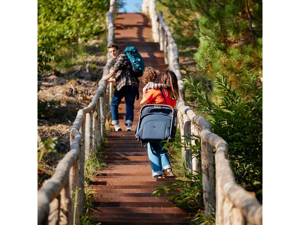 Slunení clona je vybavená UPF 50+ a lze ji rozšíit dopedu. Prhledná integrovaná ventilace ve slunení stíšce zajišuje monost být stále s díttem v kontaktu.