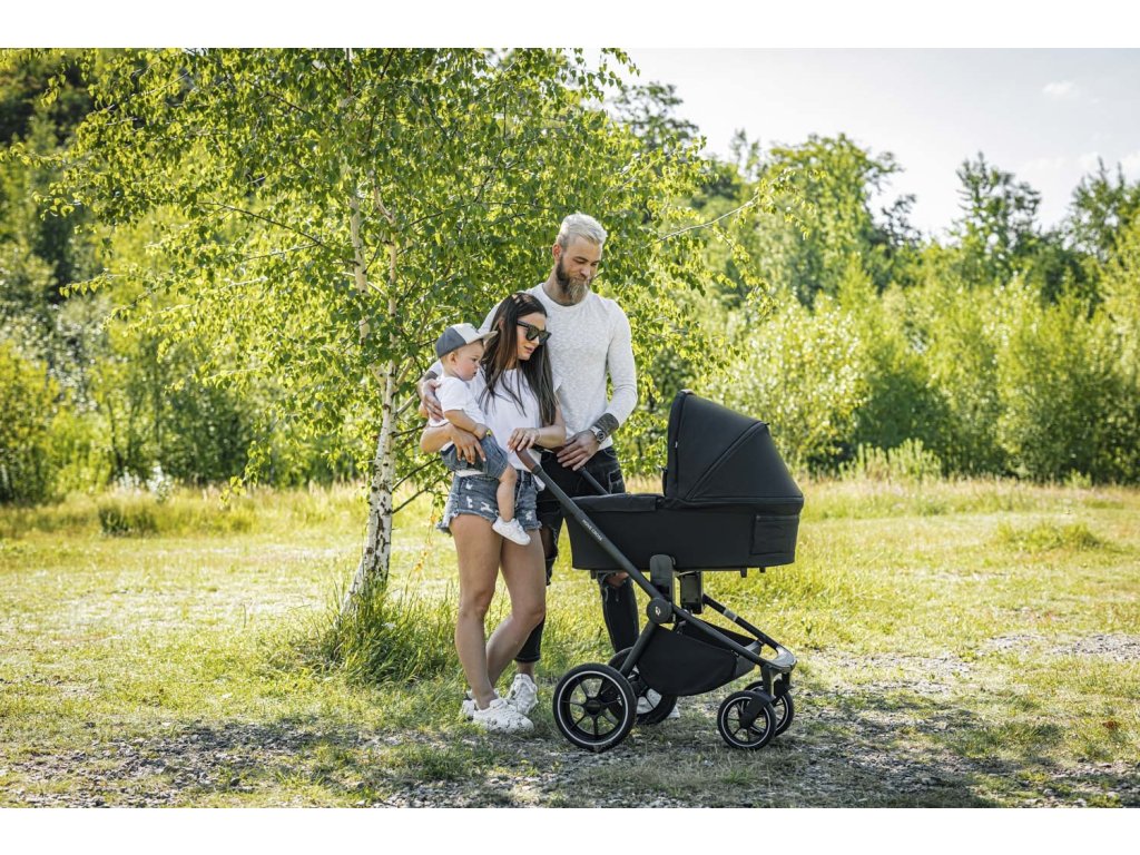 poloze, a rodič poté pohodlně pomocí madla sejme korbu z podvozku.