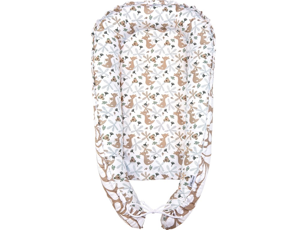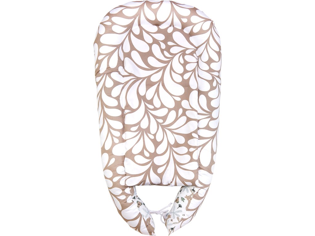 Little Angel Hnízdo oboustranné VISCO pěna Outlast® - bílá-klokan/taupe-listy