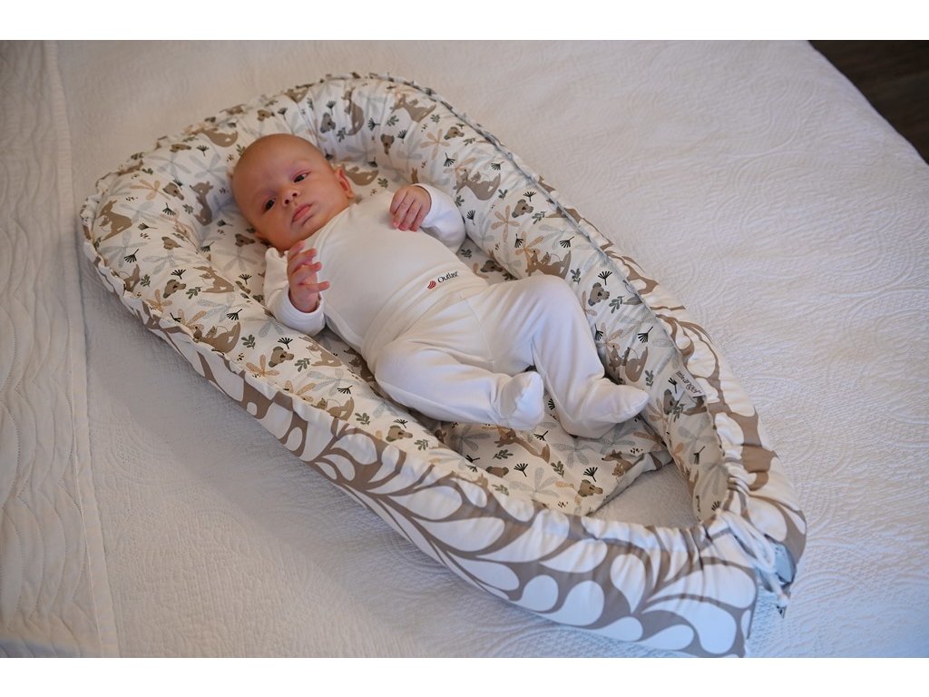 Hnízdo je ušito tak, aby podporovalo pocit jako u maminky v bříšku. Tento praktický pomocník Vám zaručí, že miminko může spát v posteli přímo s Vámi a zároveň napomůže jednoduššímu nočnímu kojení. Svým tvarem a materiálem podporuje pocit bezpečí a klidu pro kvalitní a příjemný spánek.