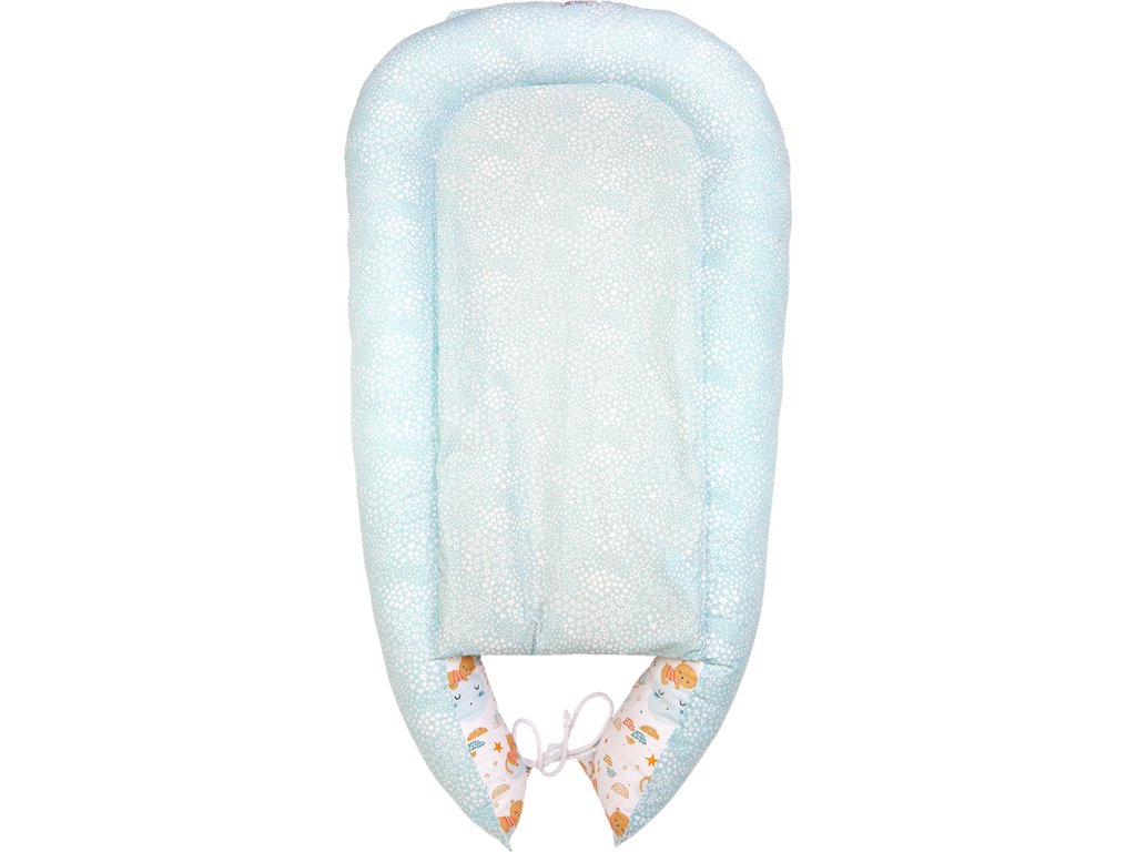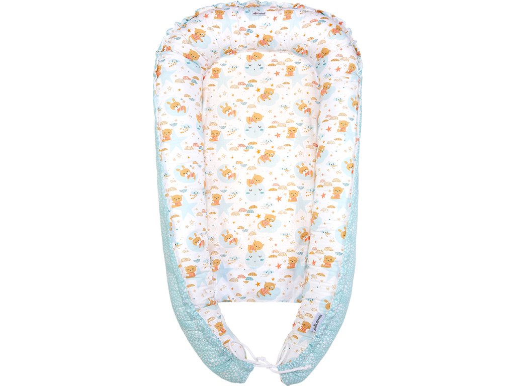 Little Angel Hnízdo oboustranné VISCO pěna Outlast® - bílá-spící zvířátka/mentolová-hvězdičky
