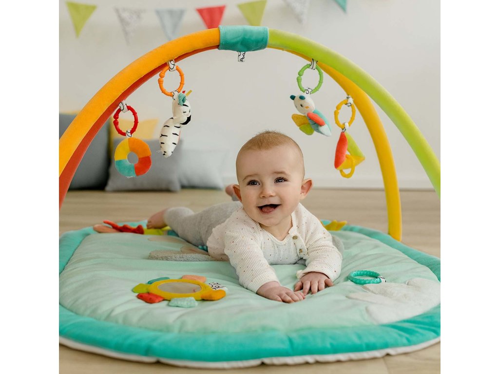 Měkká, barevná dobrodružná deka Koala s 5 odnímatelnými hračkami na hrazdičce nabízí dětem zábavu při hraní v různých fázích růstu již od narození – dokonalá první dětská deka.