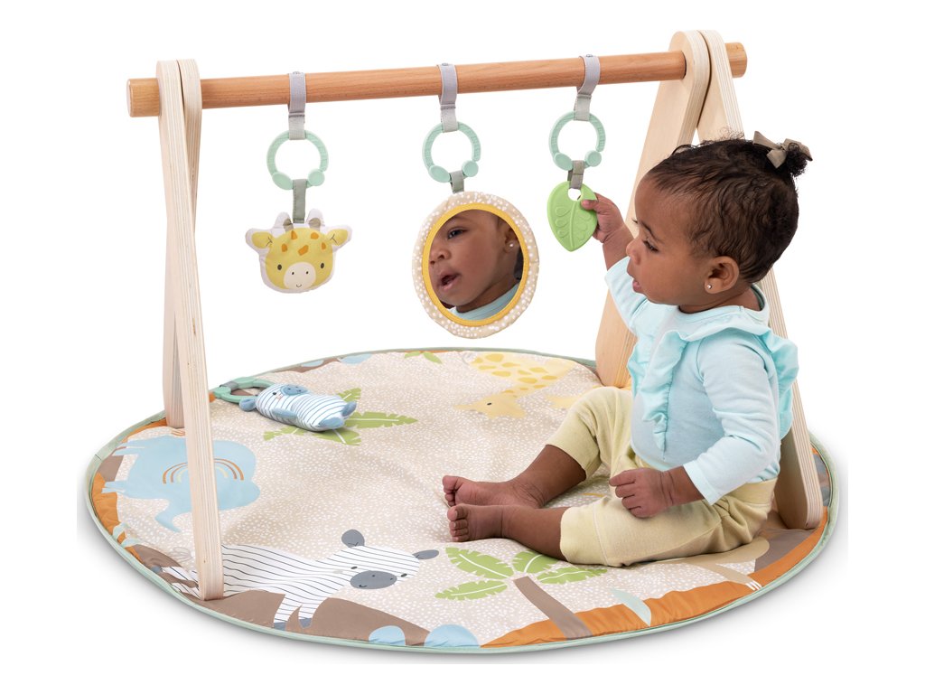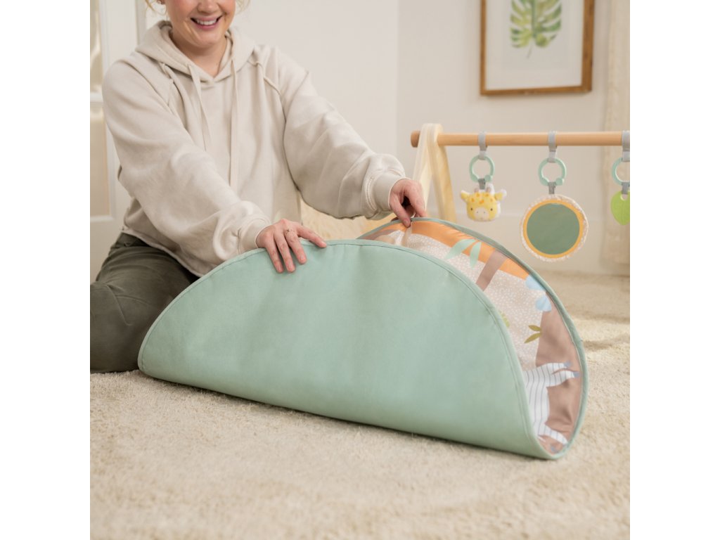 Vytvořte vašemu miminku bezpečné a hravé prostředí na podložce, která roste spolu s ním! Tato deka na hraní Wonder & Wood™ nabízí tři fáze hry: ležení, čas na bříšku a vsedě. Navíc moderní dřevěný design s A – rámem se hodí do každého interiéru a složíte jej bez nářadí – ideální na doma i na cesty. Všechny hračky jsou navrženy pro rozvoj smyslů, poznávání tvarů, textur a zvuků. Díky C-kroužkům je snadno odpojíte a připevníte na kočárek, autosedačku nebo židli. Ideální jako dárek na baby shower, narozeniny či jen tak pro každodenní pohodlí.