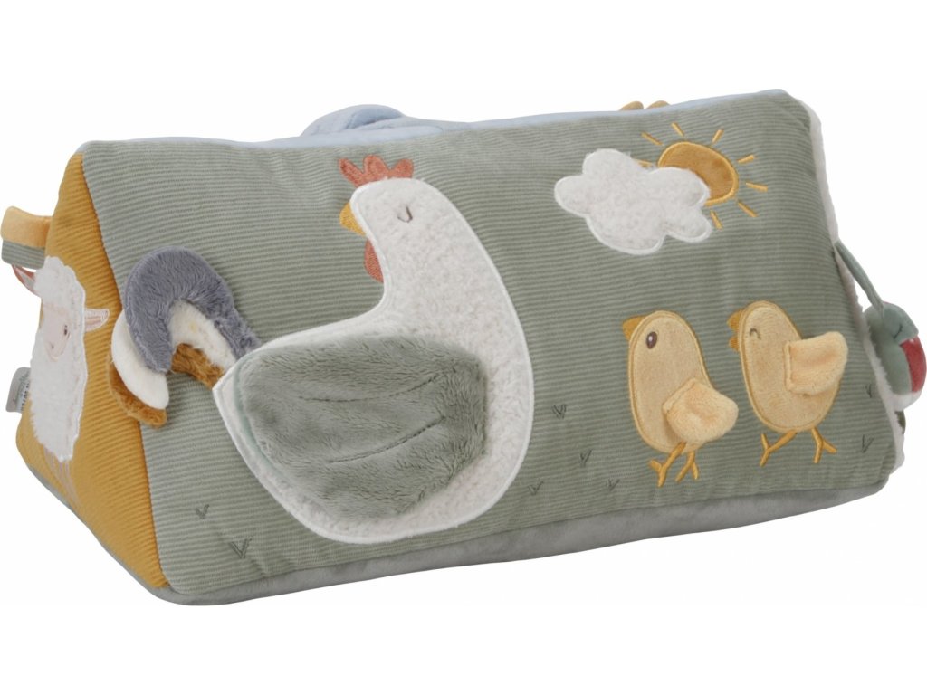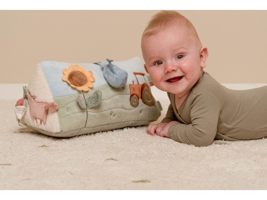 Polštářek z jemného, měkkého materiálu s krásnými motivy života na farmě je speciálně navržený, aby podporoval hraní dítěte na bříšku. Hračky na polštářku i originální vyšívané aplikace lákají dítě ke zkoumání a pozorování. Každá strana polštářku je jiná, takže stačí polštářek otočit a nabídnout dítěti nové podněty k zabavení i rozvíjení jeho jednotlivých smyslů.