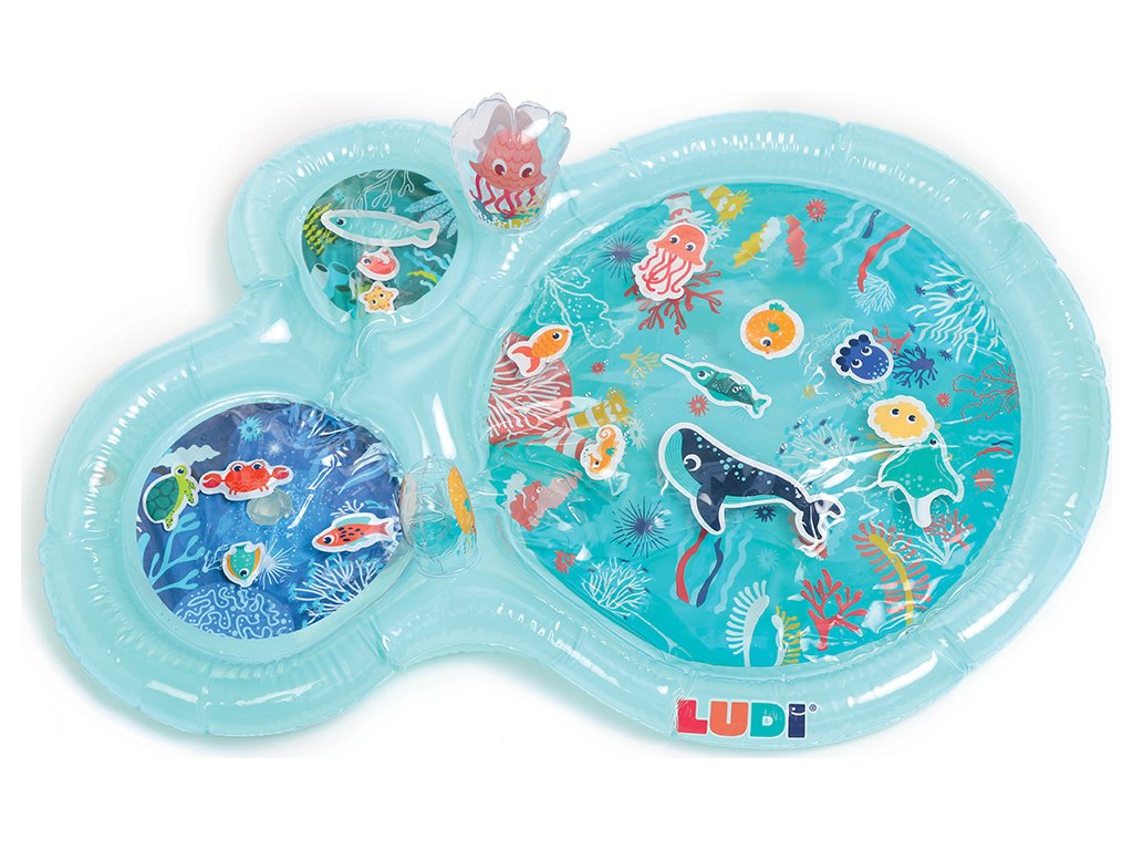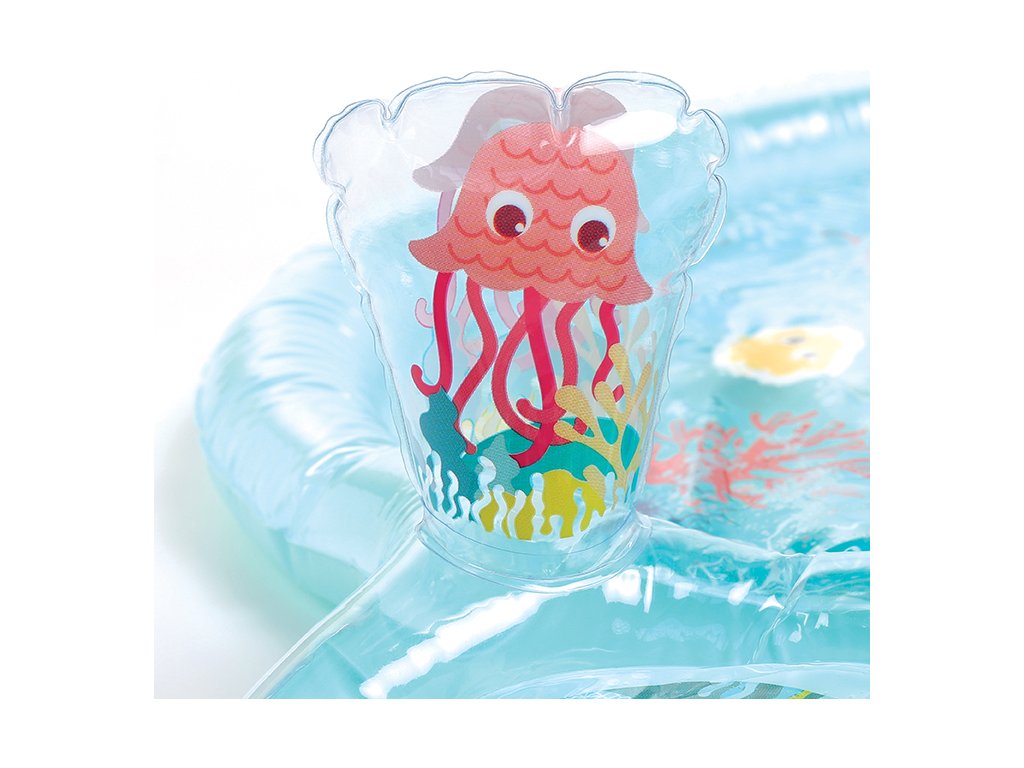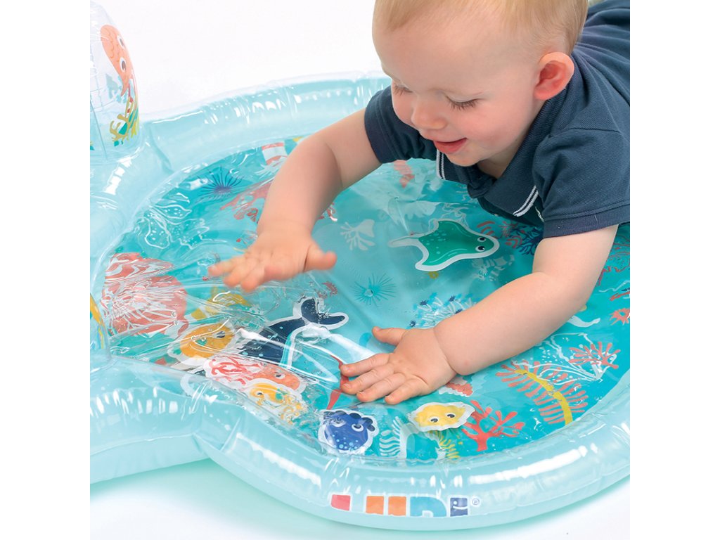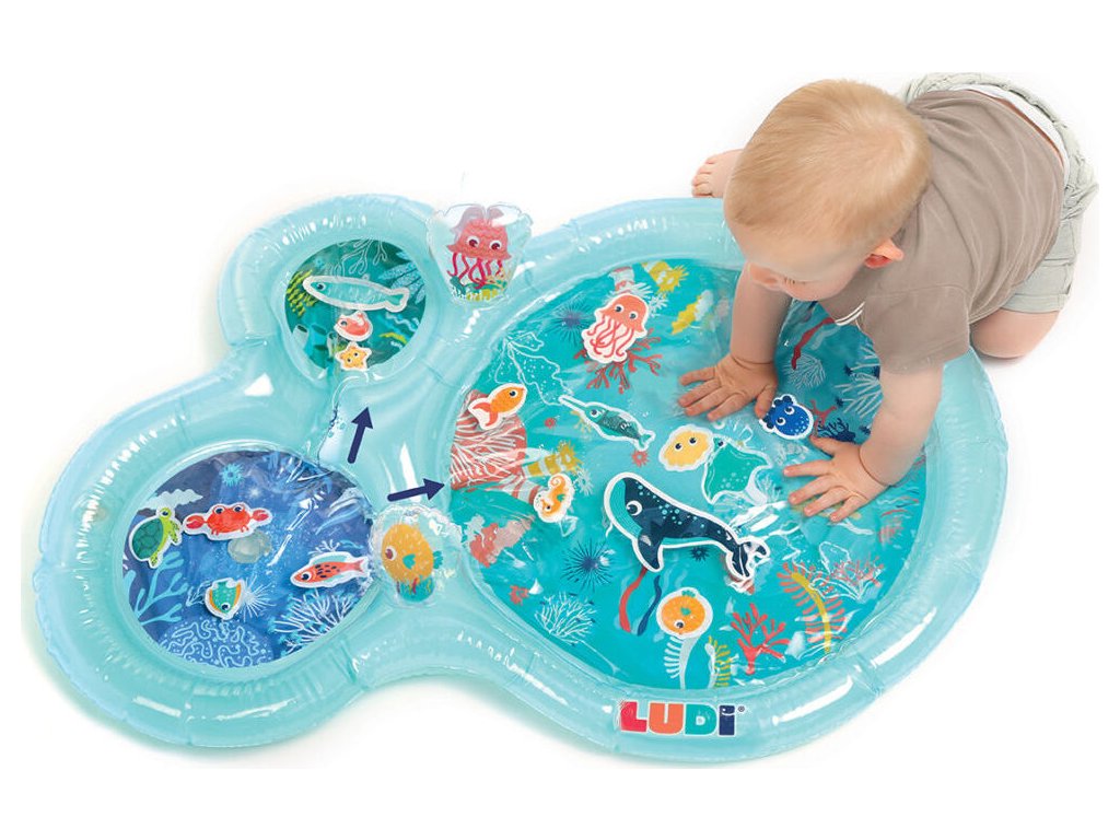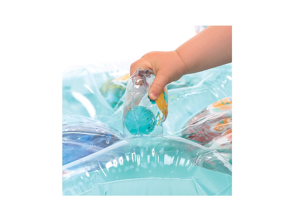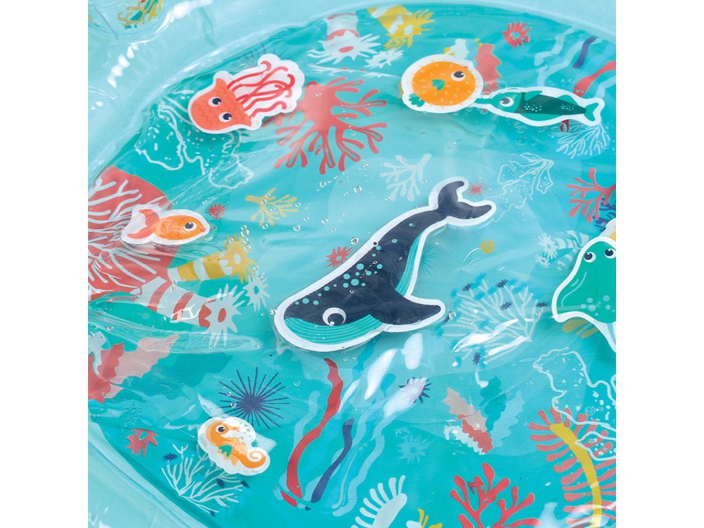 Interaktivní podložka na hraní naplněná vodou připomíná skutečný podmořský svět s vodními živočichy. Figurky mořských tvorů se uvnitř ve vodě začnou pohybovat, kdykoli dítě na podložku sáhne rukou. Jednotlivé části podložky jsou propojené, takže když se dítě o podložku opře, voda proudí mezi jednotlivými částmi. Na nafukovacích okrajích jsou umístěna dvě nafukovací madla, která při zmáčknutí pískají a cinkají.
