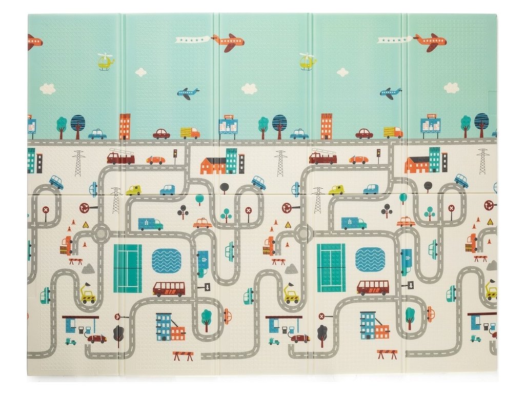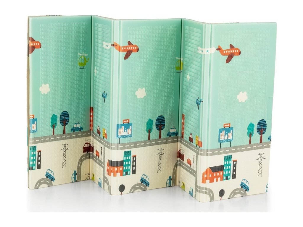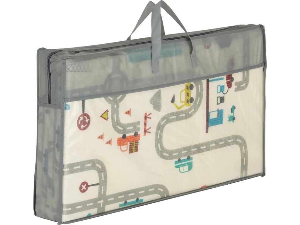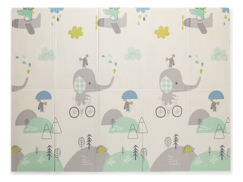 Měkká skládací podložka pro bezpečnou hru vašeho děťátka. Vhodná od narození. Podložka má oboustranný potisk s veselými motivy, protiskluzovou úpravu na povrchu, skvěle izoluje, je voděodolná, jemná na povrchu, elastická, avšak tvarově stabilní, skladná a především poskytuje dětem bezpečí při hře. Dá se složit do praktické přenosné tašky, která je součástí produktu. Díky své lehkosti a jednoduchému skládání je podložka snadno přenosná a vhodná pro použití uvnitř i venku.