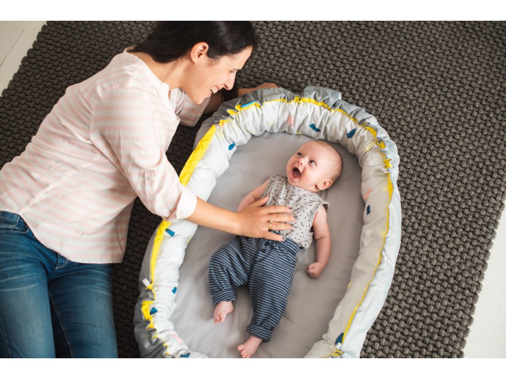 Měkká hrací deka & hnízdo svými zvednutými okraj vytváří bezpečné a útulné prostředí pro novorozence. Okraje zároveň slouží k podepření miminka při hraní na bříšku, které je důležitou součástí vývoje svalů dítěte. Pro starší miminko z hnízda snadno vytvoříte prostornou hrací deku.