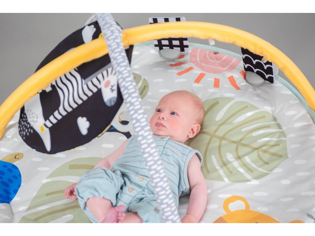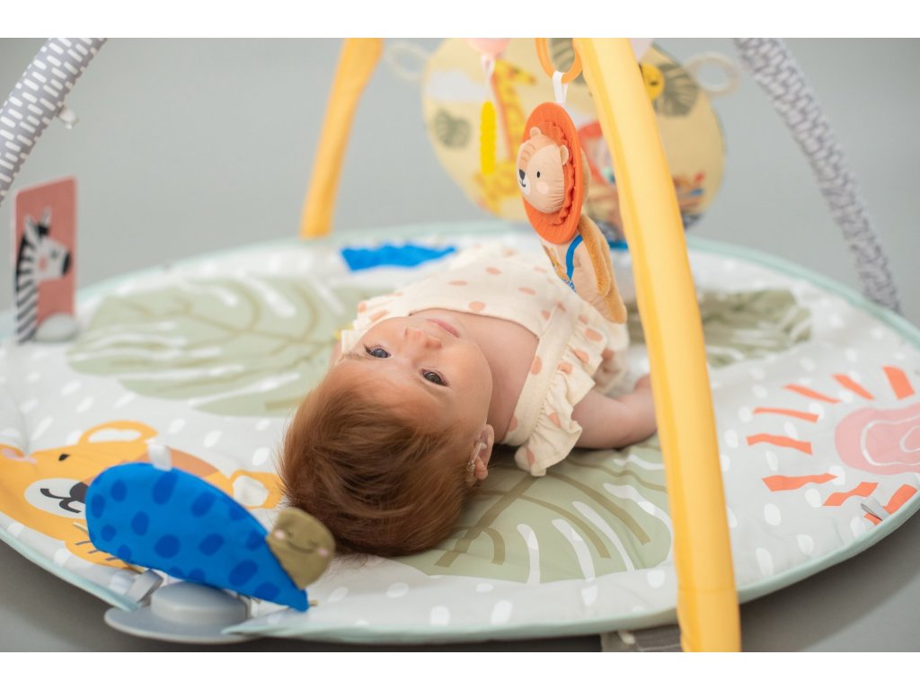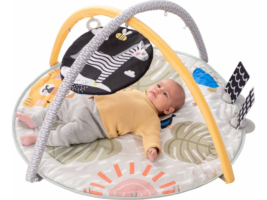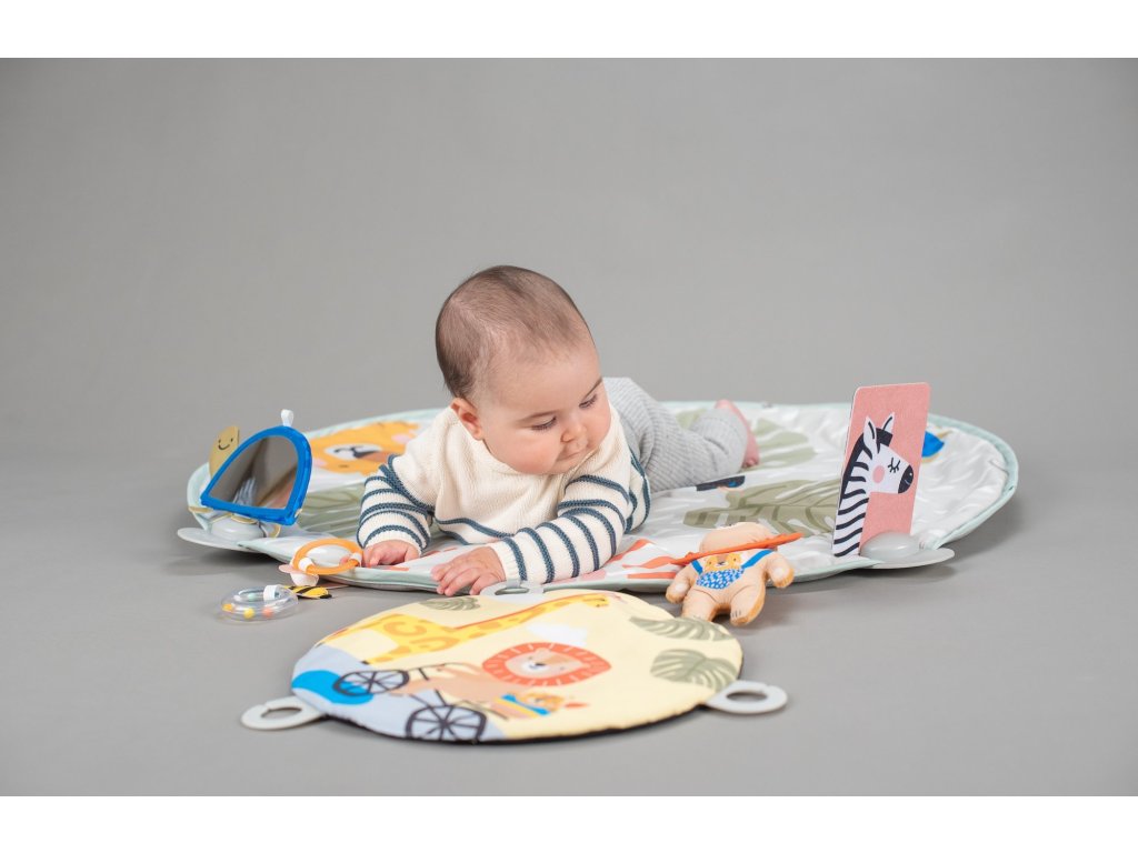 Měkká hrací deka s množstvím různorodých aktivit pro zkoumání a objevování je navržena pro různá věková stádia vývoje dítěte od narození.