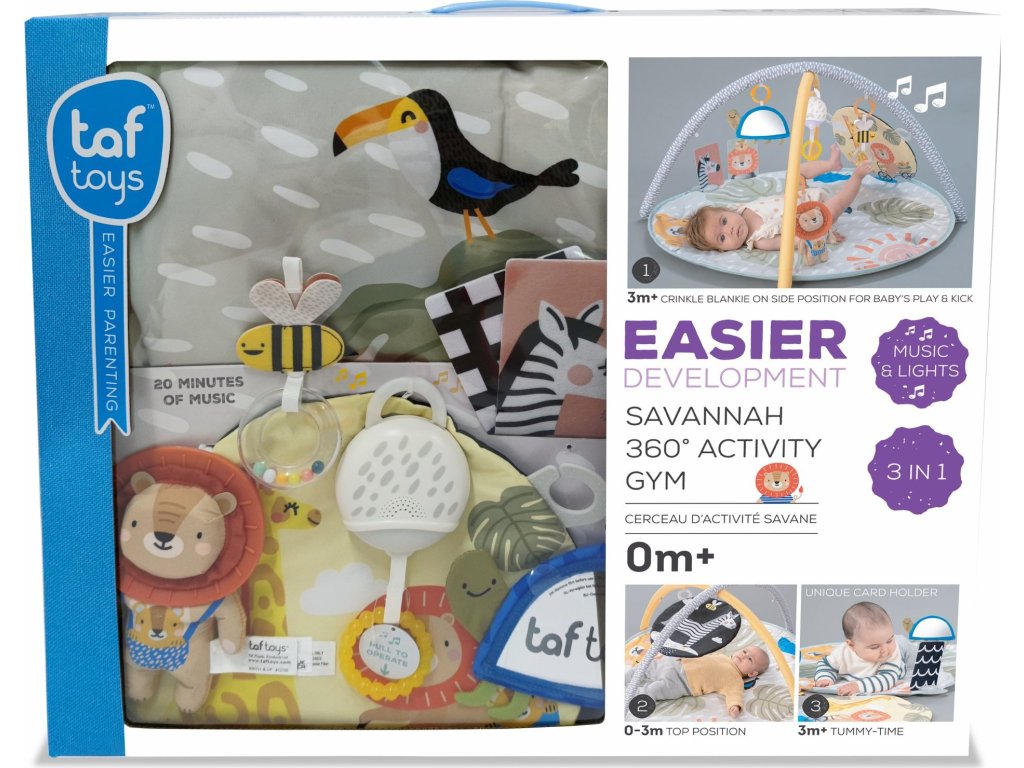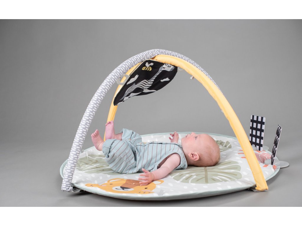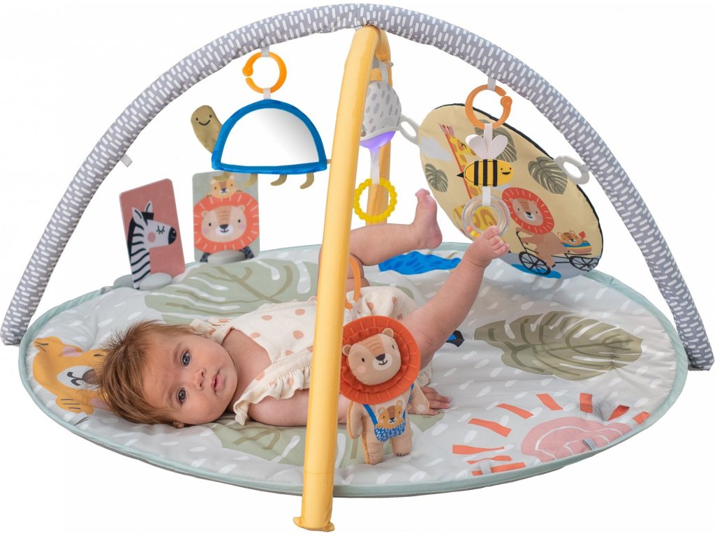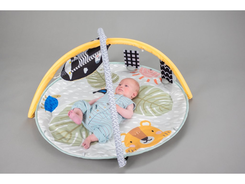 Měkká hrací deka s množstvím různorodých aktivit pro zkoumání a objevování je navržena pro různá věková stádia vývoje dítěte od narození.