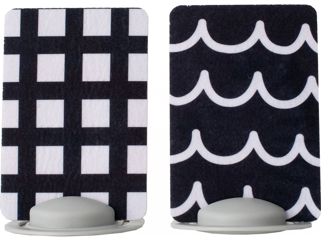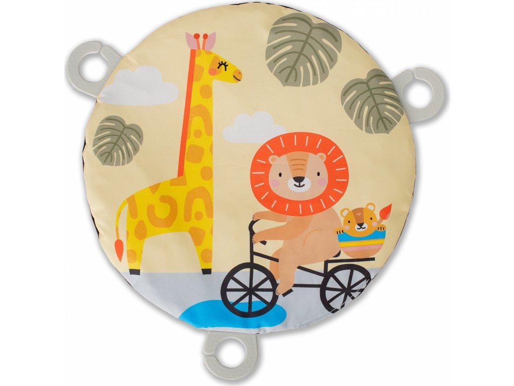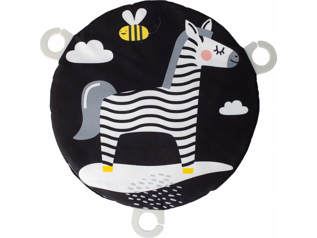 Originální odnímatelné hračky včetně oboustranného šusticího panelu upoutají pozornost dítěte a zajistí mu hodiny zábavy. Strana panelu s vysoce kontrastními černobílými ilustracemi je určena pro děti od narození do 3 měsíců, různobarevná strana je ideální pro děti od 3 měsíců. Panel je možné připevnit různými způsoby k dece i hrazdě a podněcovat tak hraní dítěte v různých polohách: