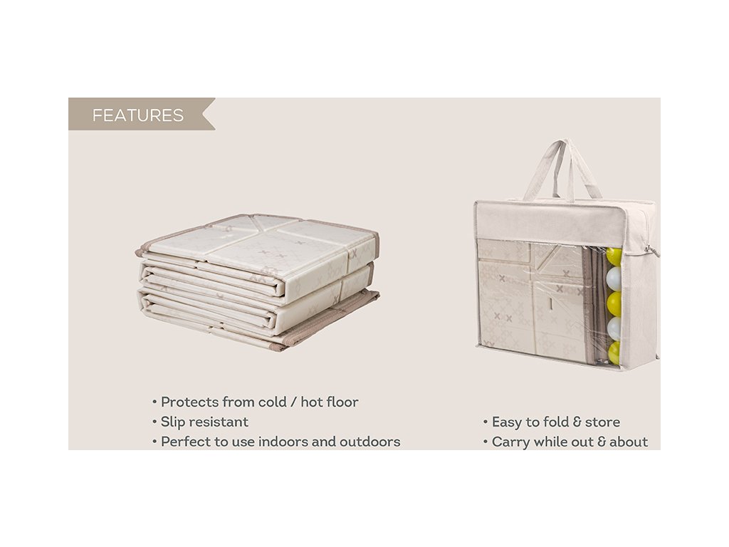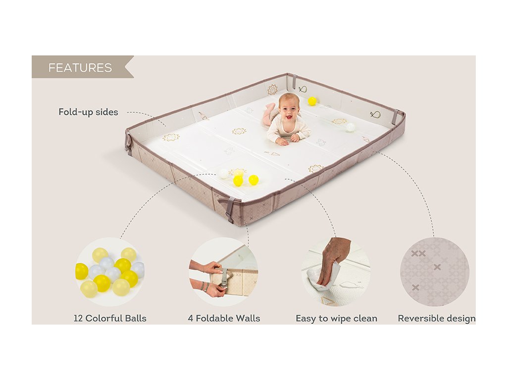 Extra velká, oboustranná pěnová hrací deka vyniká svou univerzálností a pohodlím pro vás i vaše dítě od narození. Jedinečné zvednuté okraje vytvářejí bezpečnou, uzavřenou hrací plochu, udržují hračky a míčky na dece a poskytují miminku pocit bezpečí. Starším dětem okraje snadno položíte, abyste maximalizovali plochu na hraní.