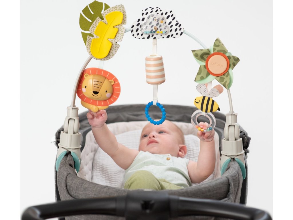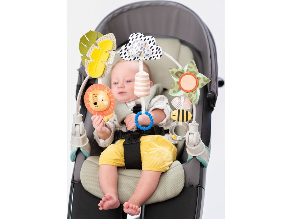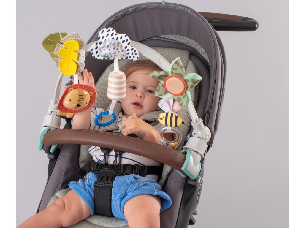 Hrazda je určena k připevnění na kočárek nebo autosedačku a zabaví vaše miminko na cestách.