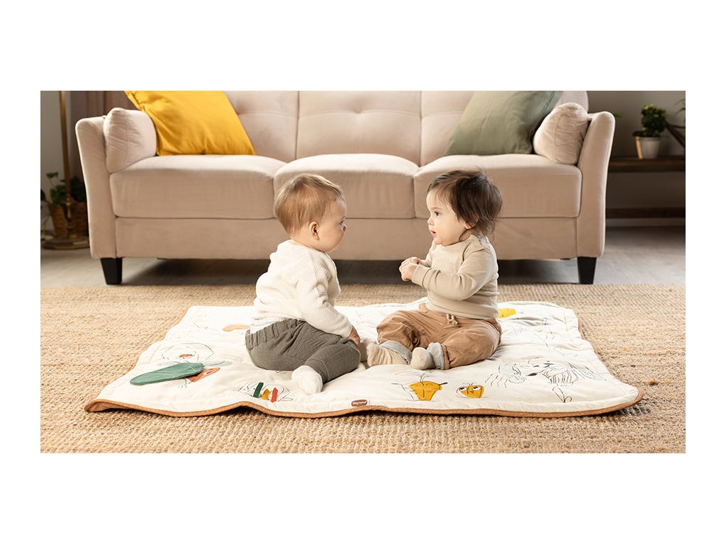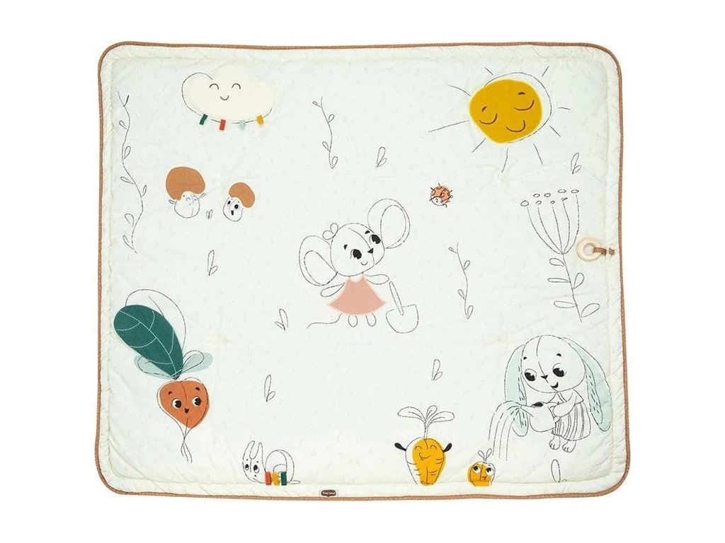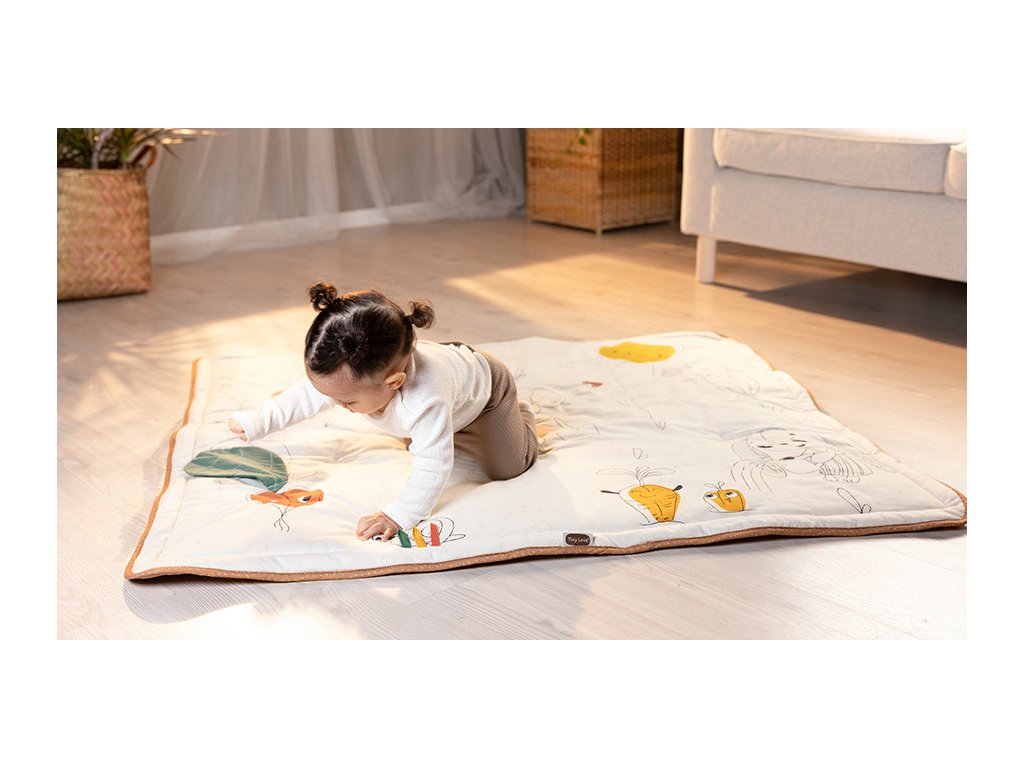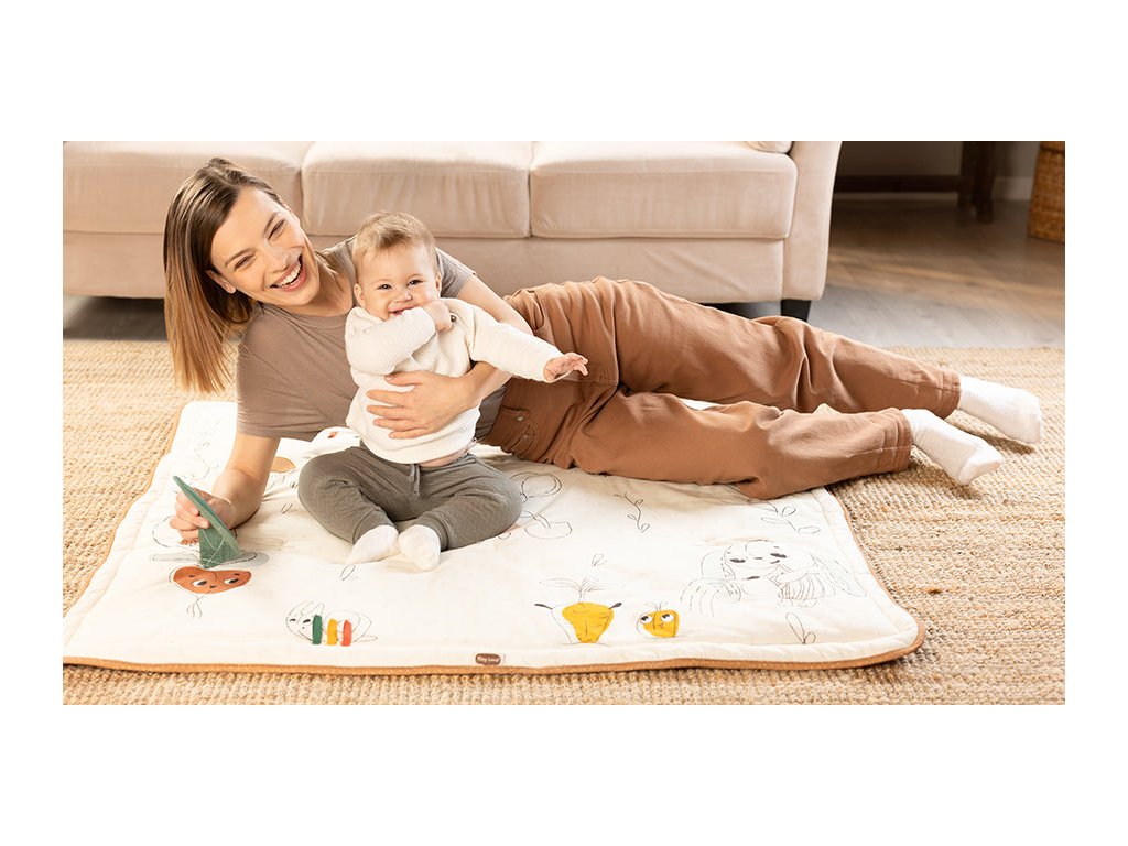 Nádherná hrací deka Tiny Love navržená s láskou a péčí odborníky na vývoj dítěte poskytne vašemu dítěti pohodlné prostředí pro hraní a objevování. Deka v originálním retro designu upoutá svými krásnými ilustracemi motivů z přírody i aplikacemi s různorodou texturou, které lákají dítě ke zkoumání. Protiskluzová spodní strana pomáhá udržet deku na místě i při použití na hladké podlaze.