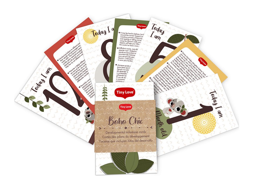 Balení obsahuje 12 ilustrovaných karet s čísly 1-12, se kterými můžete každý měsíc vyfotit své miminko a dokumentovat tak jeho růst a vývoj během prvního roku života.