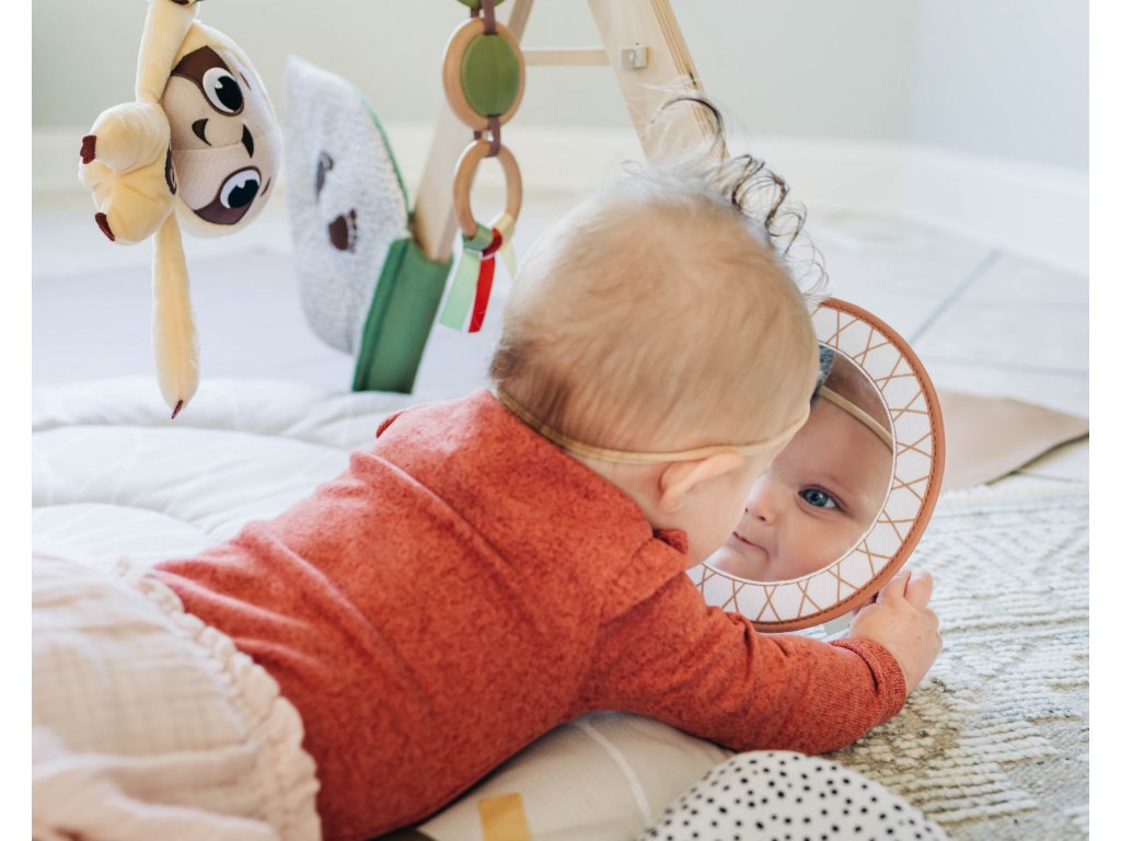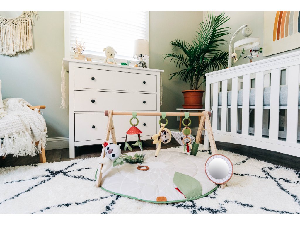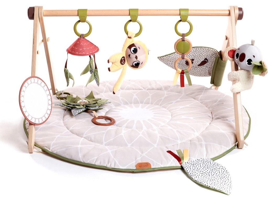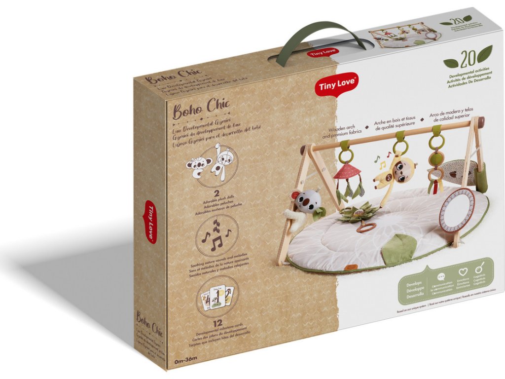 Hrací deka s hrazdou Tiny Love Boho Chic v luxusním provedení s dřevěnou hrazdou nabízí různorodé aktivity k zabavení a stimulaci smyslů dítěte od narození.