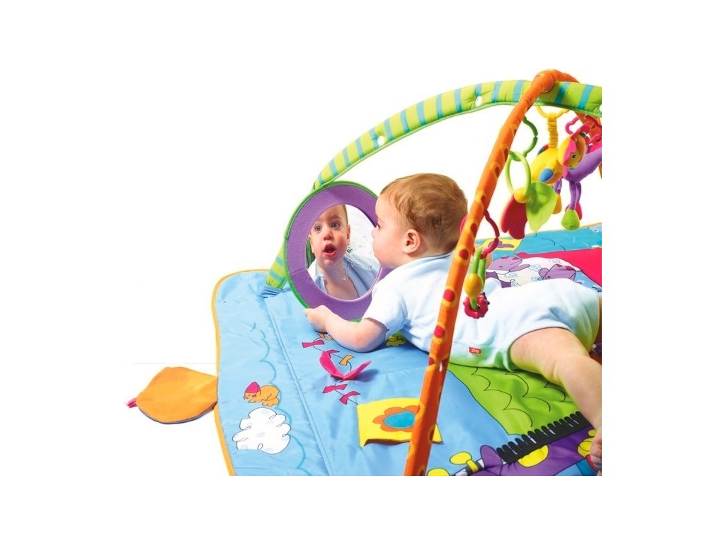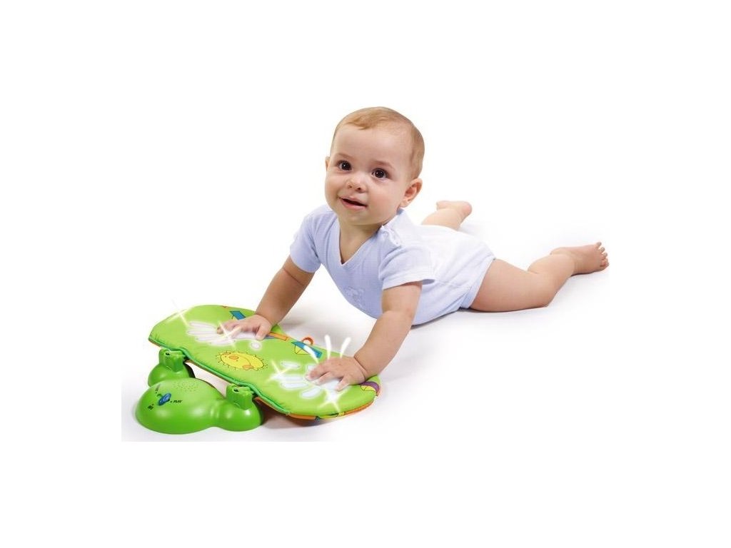 Hudební pult reaguje na kopání nožiček dítěte a v pozdějším věku jej dítě může ovládat rukama při hře na bříšku nebo vsedě. Pozornost dítěte upoutají chrasticí a cinkající hračky, schovávací okénka, bezpečné zrcátko, šusticí části i kousátka.