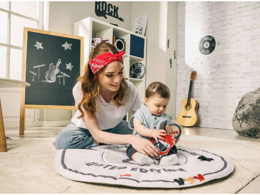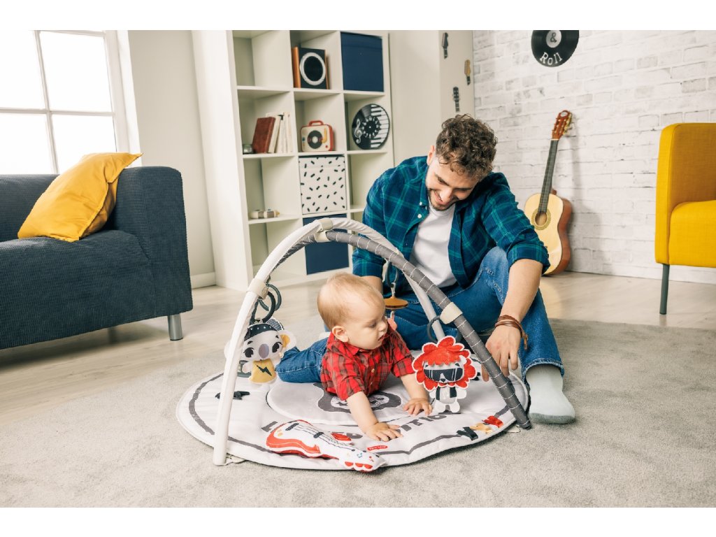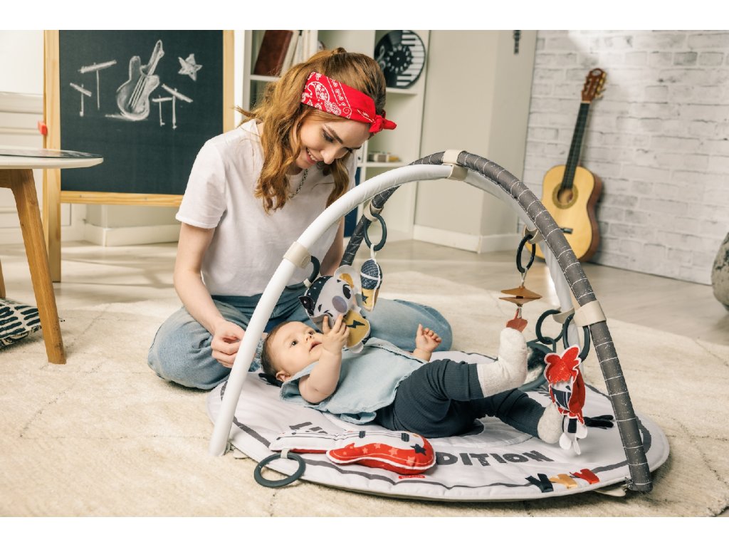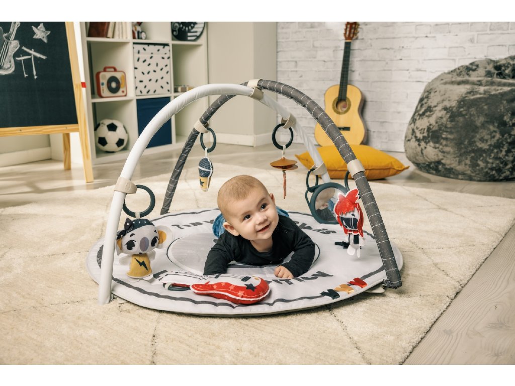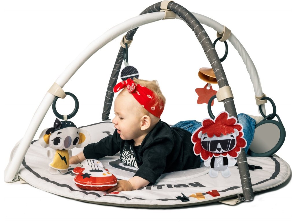Hrací deka s hrazdou Tiny Love Gymini Tiny Rockers v unikátním rockerském provedení, které upoutá pozornost dítěte již od narození, nabízí různorodé aktivity k zabavení a stimulaci smyslů dítěte.