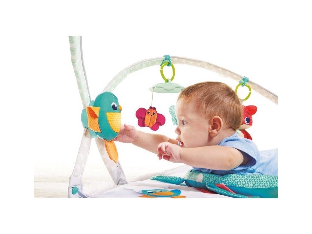 Hrací deka Tiny Love s aktivitami a unikátním posuvným středovým dílem, který umožňuje přizpůsobit hrazdu věku dítěte, hraní na bříšku apod. Odnímatelný hudební box ve tvaru ptáčka s nahranými melodiemi a světélky nabízí i možnost nahrávání. Můžete tak dítěti nahrát vlastní vzkaz a v pozdějším věku může naopak vaše dítě nahrávat svůj vlastní hlas a první slůvka.