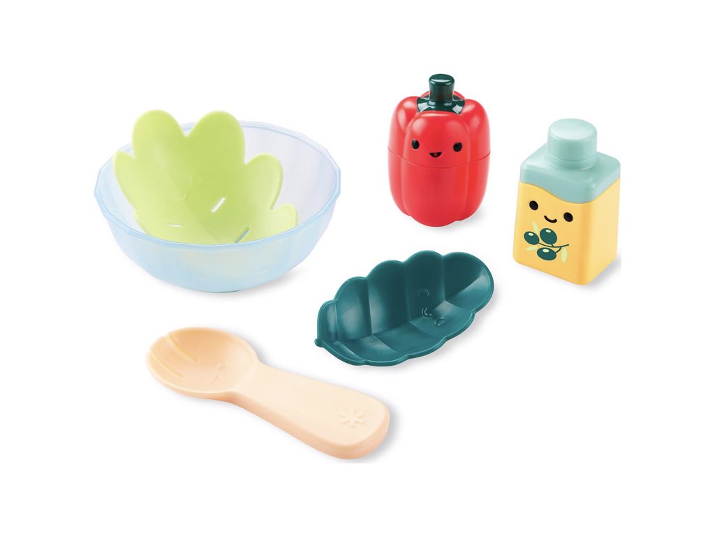 Balení obsahuje: cedník, sítko na salát, zelí, lžíci na míchání, papriku a olivový olej v podobě stříkačky. Malí kuchaři mohou nejen "omývat" své ingredience, ale také zábavně stříkat vodu pomocí stříkačky, které jsou vyrobeny ze dvou částí pro snadné čištění.