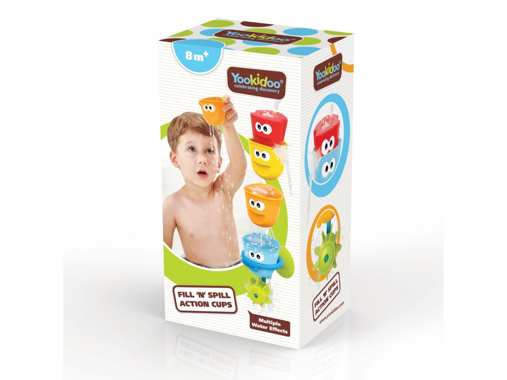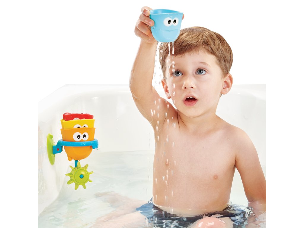 Tři výměnné kelímky s různými vodními efekty - vytvoření sprchy, točení vrtule, objevování schovaného kelímku.