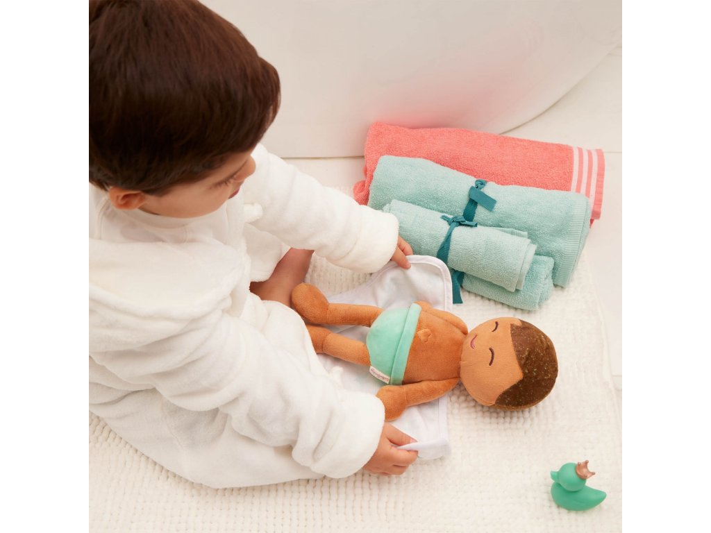 Jedinečná panenka Lulla Baby z měkkého plyšového materiálu je speciálně navržená pro hraní ve vodě. Vaše dítě může panenku koupat během pravidelného večerního koupání, ale můžete ji využít i pro hraní s vodou ve vaničce na zahradě. Hraní s panenkou pomáhá rozvíjet emoční dovednosti, empatii i představivost dítěte.