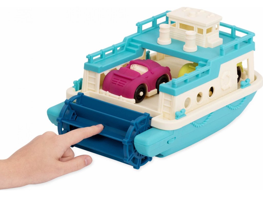 Trajekt se dvěma autíčky je vybaven nakládací rampou pro snadné nalodění autíček. Po nalodění stačí zasunout zpět rampu, natáhnout lodní šroub a trajekt může vyrazit na plavbu!