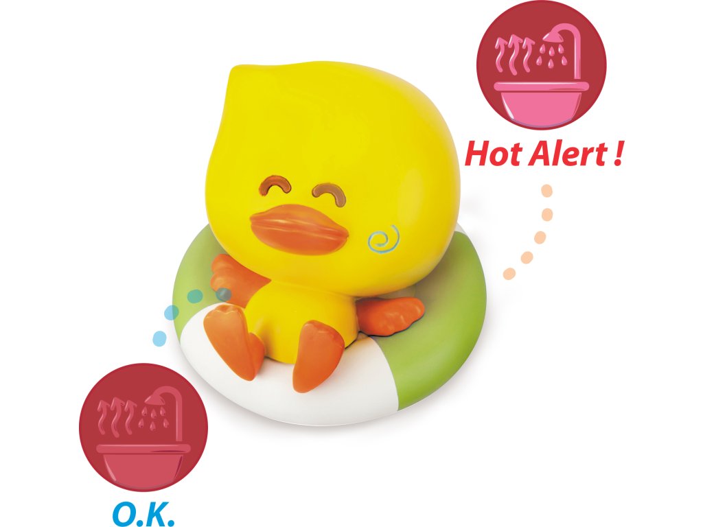 Roztomilá hračka do koupele v podobě kačenky je vybavena tepelným senzorem pro snadnou a rychlou kontrolu teploty vody ve vaně. Po vložení do příliš teplé vody se objeví kontrastní symbol na spodní části hračky, který vás upozorní, že teplota vody není optimální pro vložení dítěte.