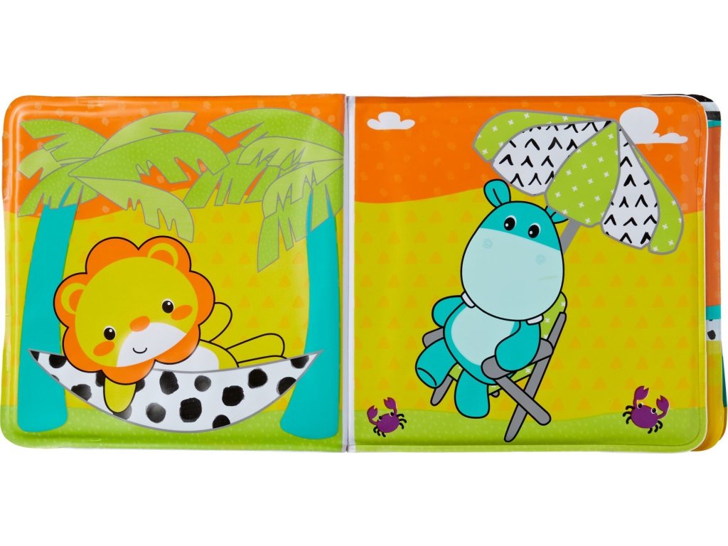 Omyvatelná knížka s krásnými ilustracemi zvířátek ve výrazných kontrastních barvách je vhodná pro použití ve vaně i jako první knížka pro společné prohlížení a vyprávění o zvířátkách.