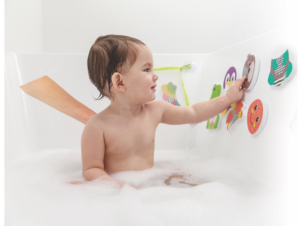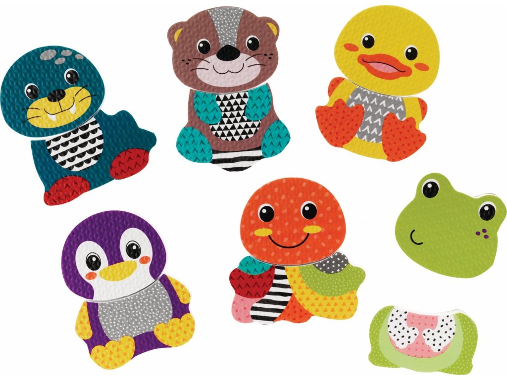 Sada šesti dvoudílných pěnových samolepek v podobě roztomilých zvířátek zajistí vašemu dítěti spoustu zábavy při koupání ve vaně. Pěnová zvířátka drží po namočení na vaně či na dlaždičkách a díky dvoudílnému provedení může dítě buď hledat, které dva díly patří k sobě a nebo naopak vytvářet legrační kombinace horního a spodního dílu zvířátek, které k sobě vůbec nepatří.