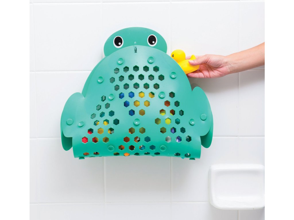 Protiskluzová podložka do vany z příjemného, měkkého materiálu slouží i jako praktický košík na odkapávání hraček po koupeli. Přísavky na spodní straně udržují podložku na místě během koupání. Velká přísavka s háčkem umožňuje zavěšení výrobku nad vanu při použití jako košíku na hračky.