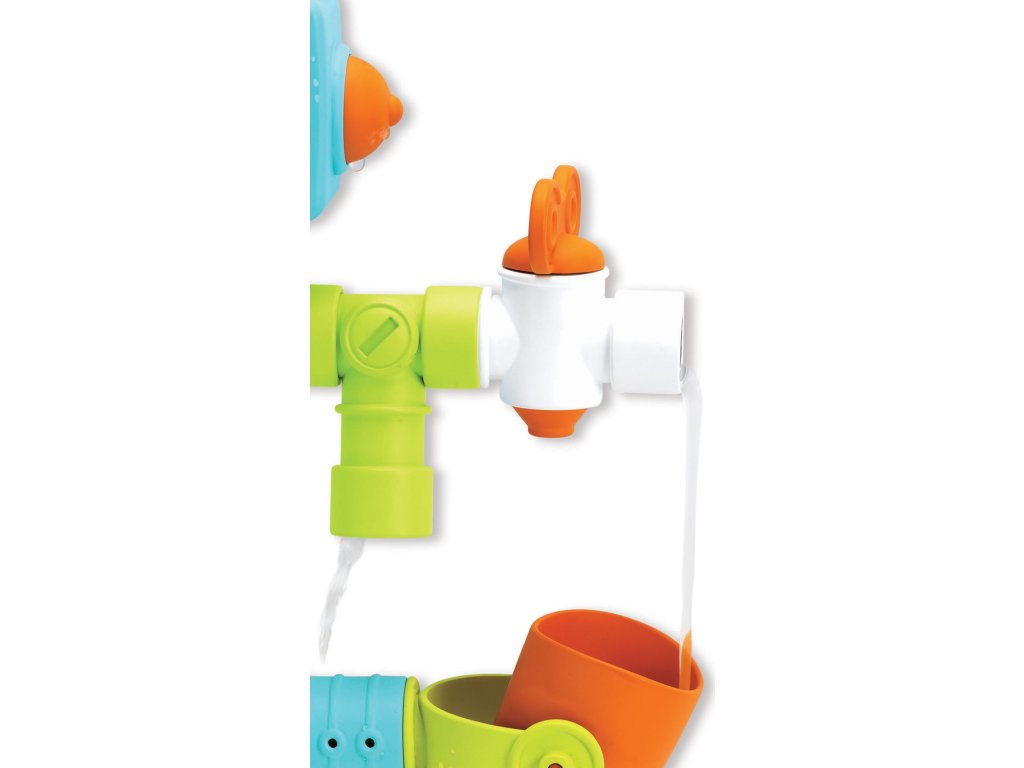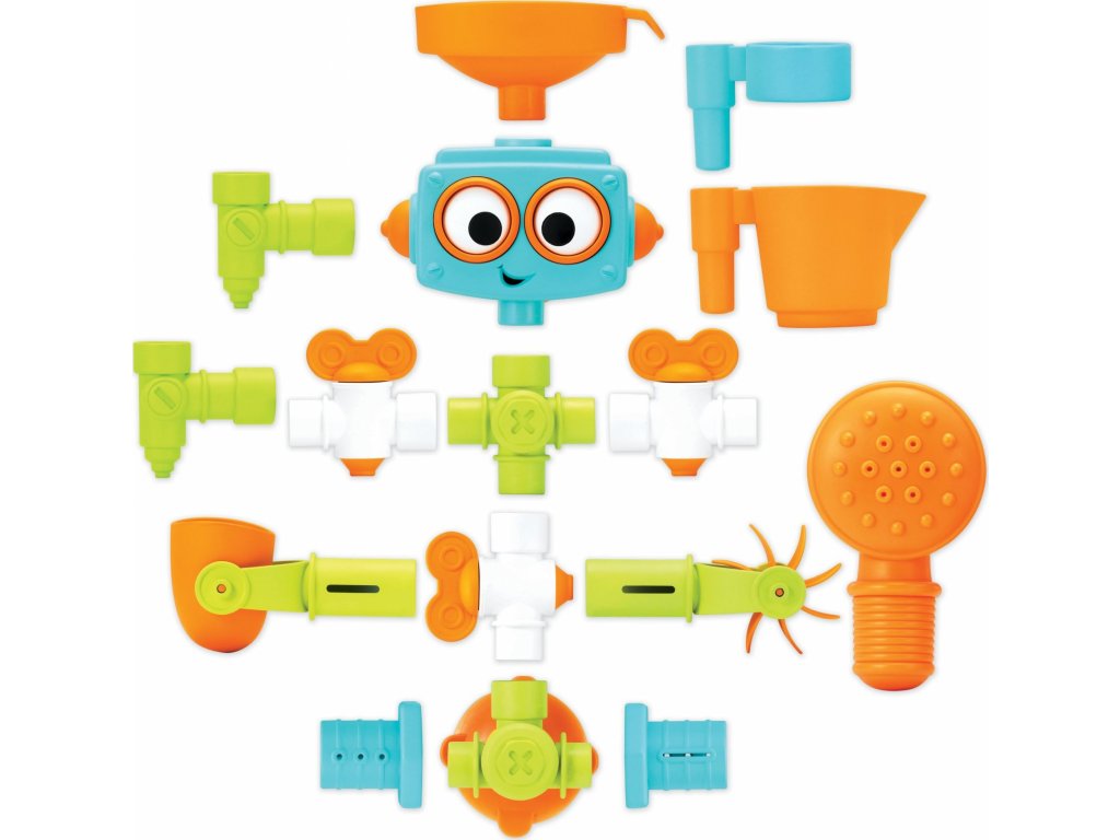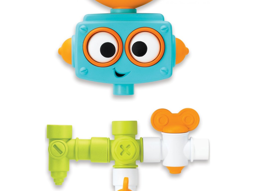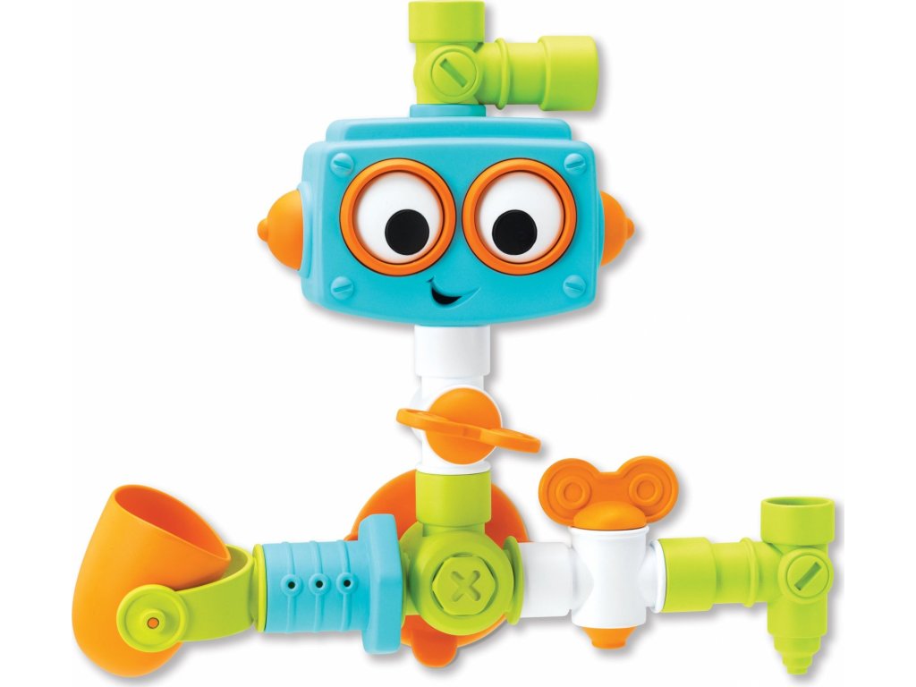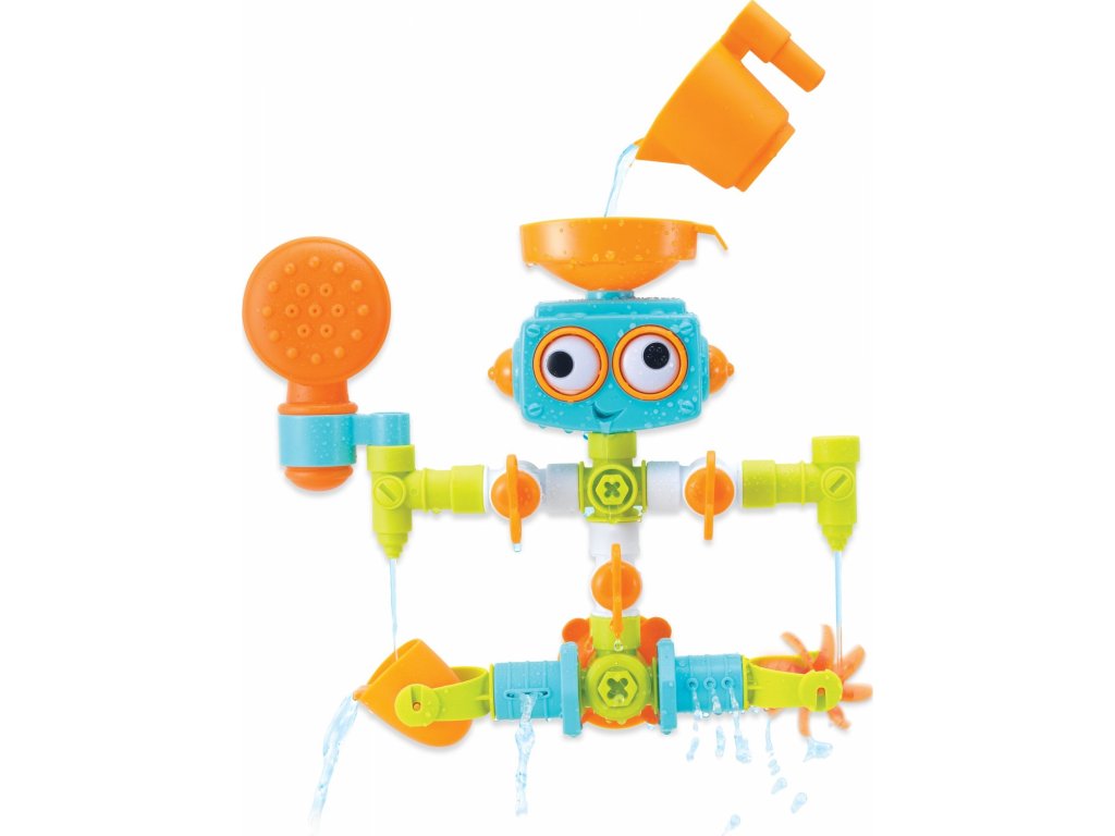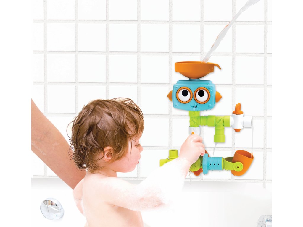 Originální hračku pro hraní s vodou během koupání ve vaně snadno sestavíte a připevníte na stěnu s pomocí přísavek. Po nalití vody do trychtýře na hlavě robota voda proudí jednotlivými částmi těla robota a vytváří různé vodní efekty. Oči robota se točí a utahováním a povolováním šroubů změníte směr, kudy voda proudí.