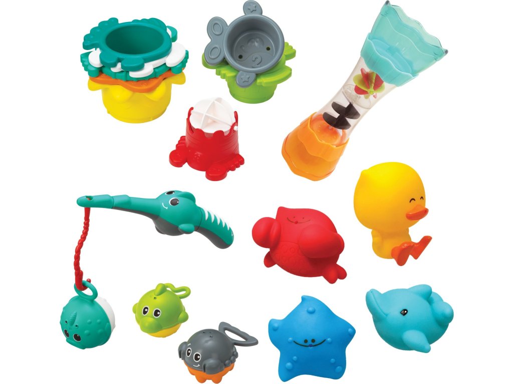 Velká 17-dílná sada hraček nejen do koupele zabaví vaše dítě při každodenním koupání. Hraní s hračkami ve vodě pomáhá rozvíjet jemnou motoriku i jednotlivé smysly dítěte.