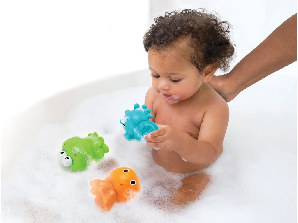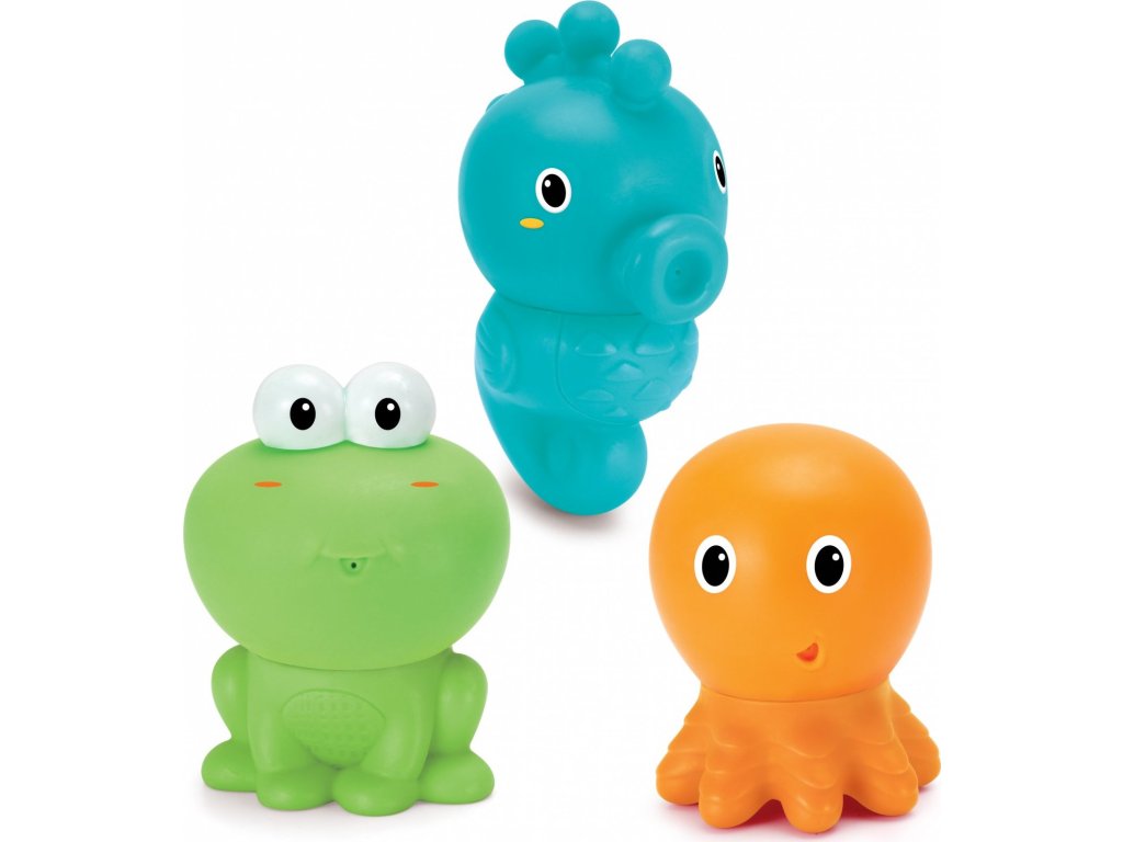 Tři dvoudílné šroubovací postavičky mořských živočichů - chobotnice, žáby a mořského koníka - zajistí vašemu dítěti spoustu zábavy při koupání. Horní a spodní díly postaviček lze spolu libovolně kombinovat a vytvářet tak pokaždé jiné figurky. Při zmáčknutí figurky stříkají vodu pro ještě více zábavy ve vaně.