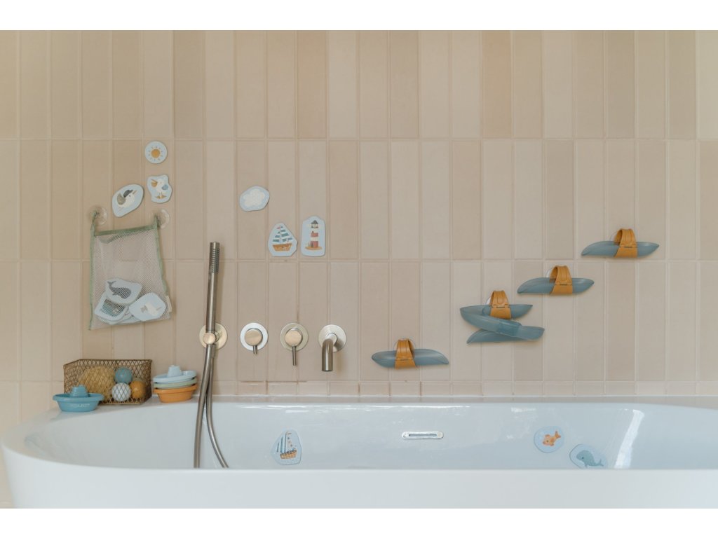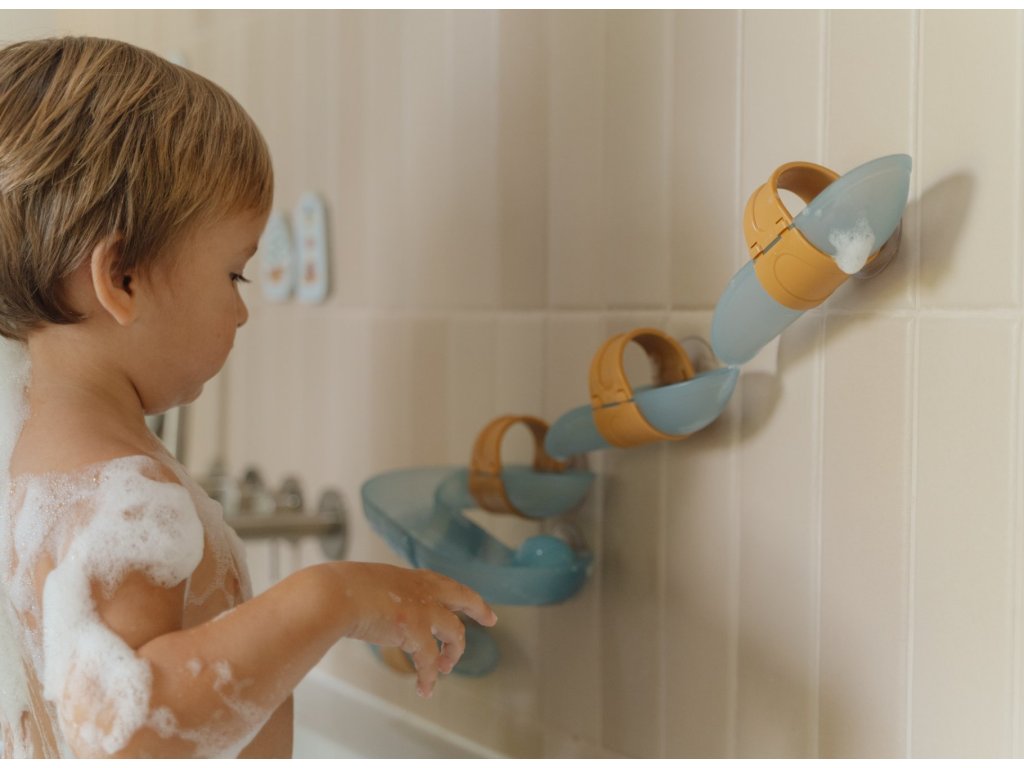 Koupání bude ještě zábavnější s touto speciální kuličkovou dráhou do vany. Dráhu snadno připevníte na vanu či dlaždičky s pomocí přísavek, které umožňují i její snadné sundání po koupeli. Sledujte společně s vaším dítětem, jak se míčky kutálí dolů jeden za druhým, až na konci žbluňknou do vody.