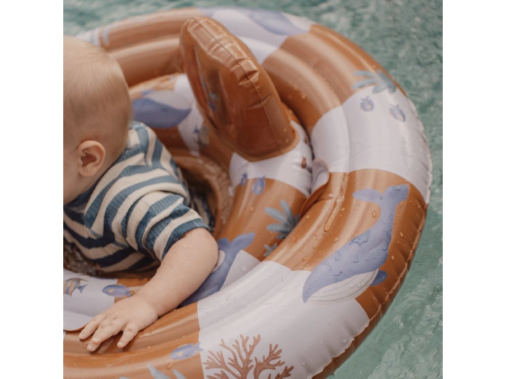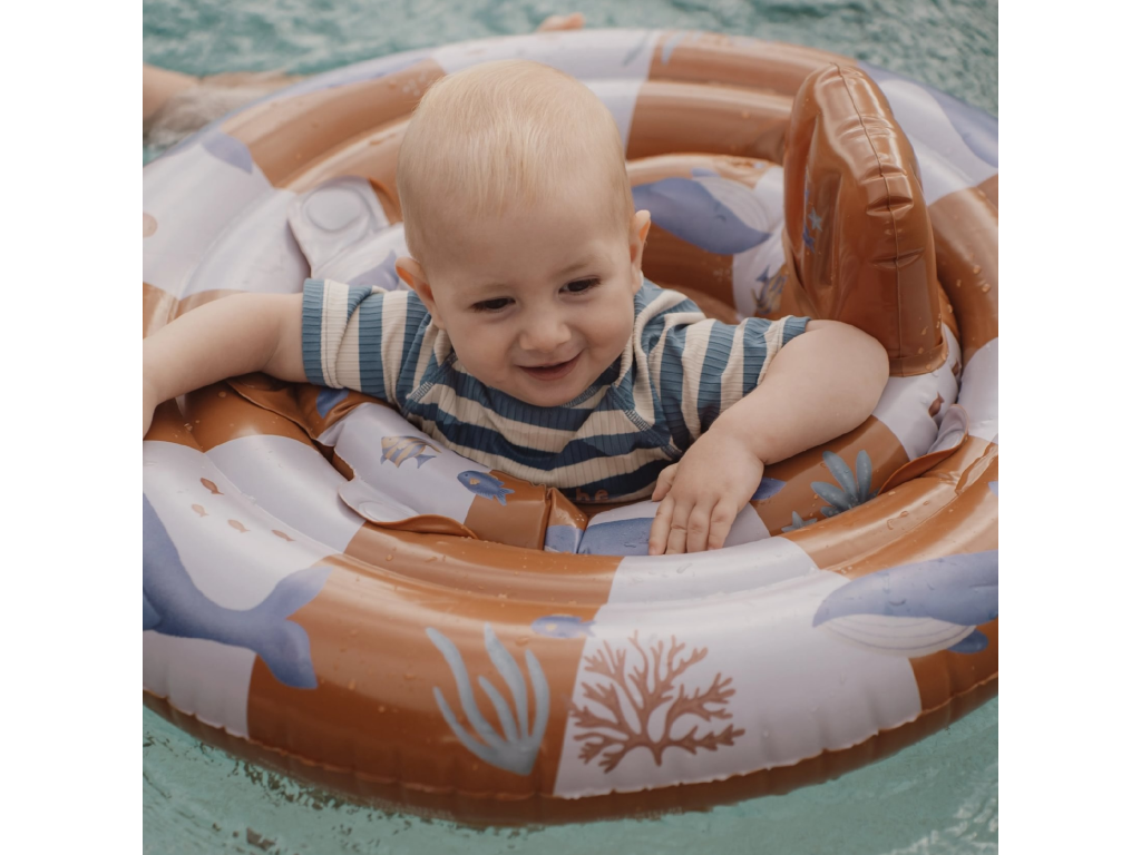 Nafukovací kruh do vody pro miminka s krásným potiskem motivů ze života pod mořskou hladinou je navržen tak, aby vašemu dítěti umožnil bezpečné první seznamování s vodou.