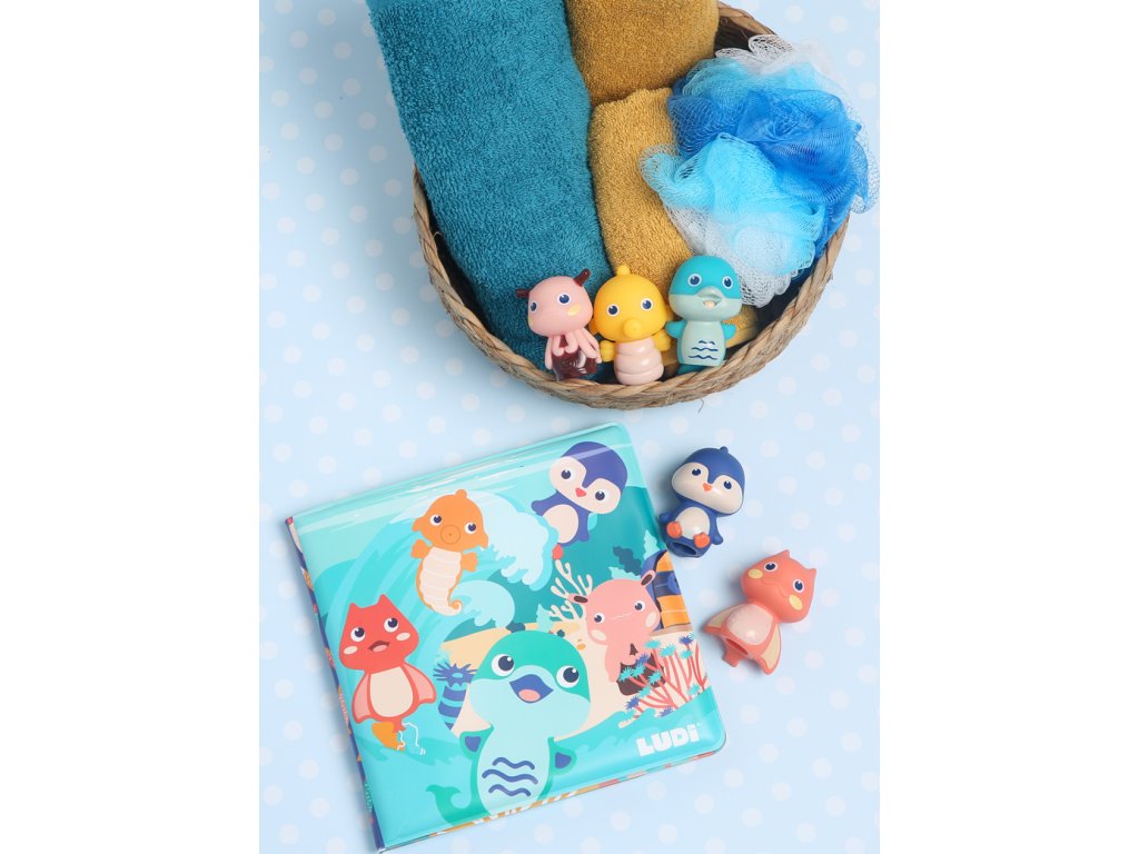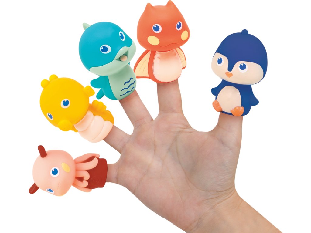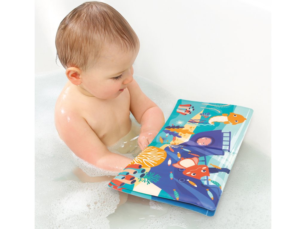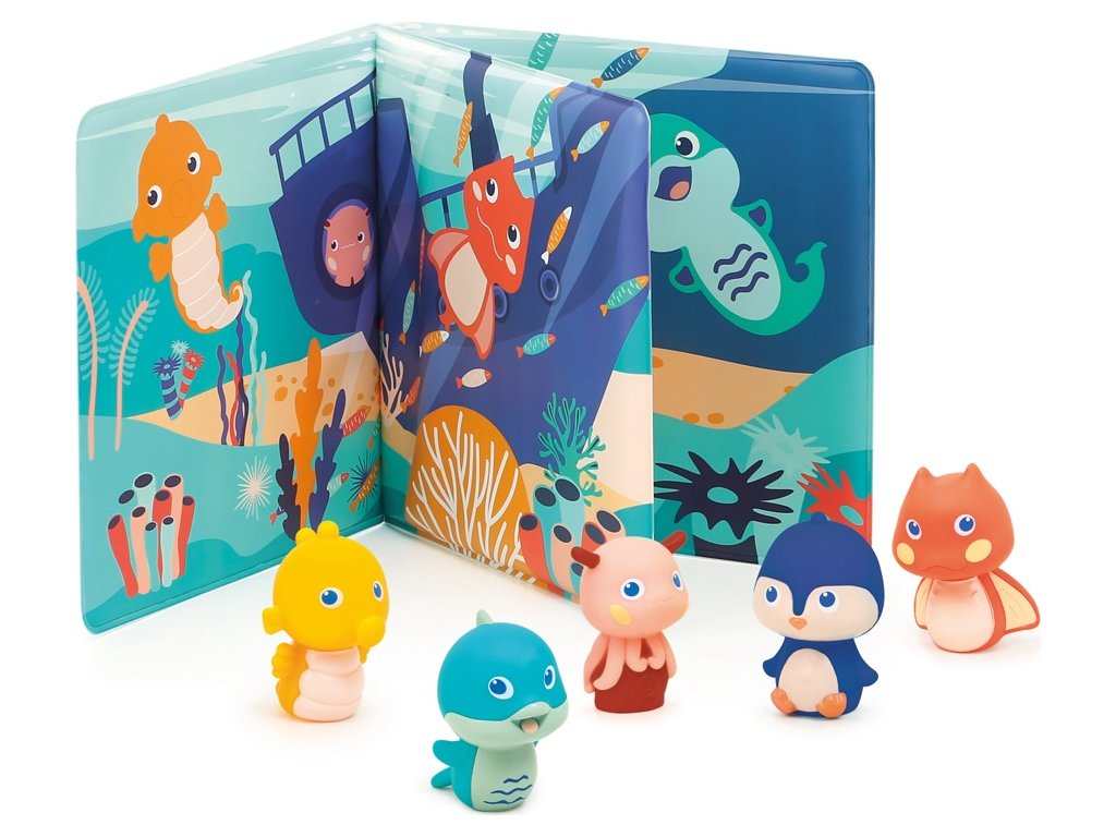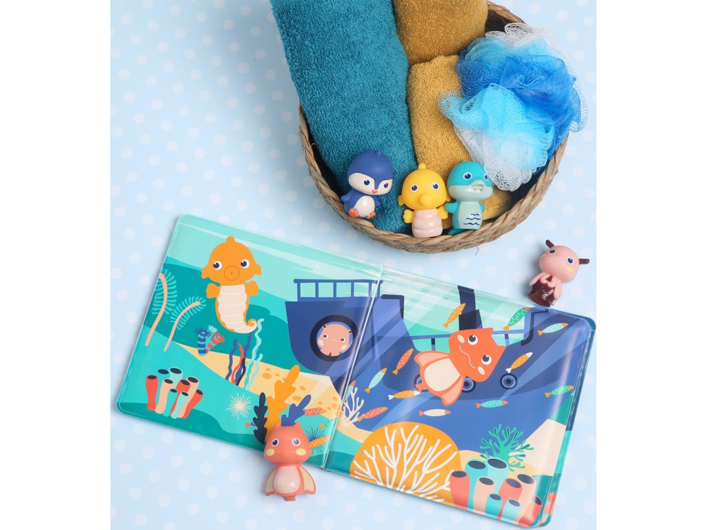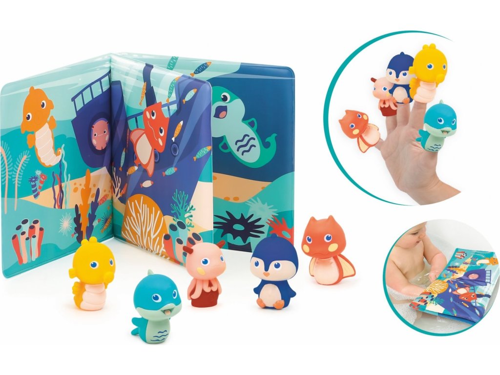 Knížka do koupele se zvířátky, která ožívají v prstech! Tato interaktivní koupací knížka s pěti prstovými maňásky přenese děti pod hladinu moře, kde je čekají barevné ilustrace, veselá zvířátka a neomezený prostor pro fantazii. Ideální do vany, bazénu i mimo vodu – na hraní není nikdy špatný čas!