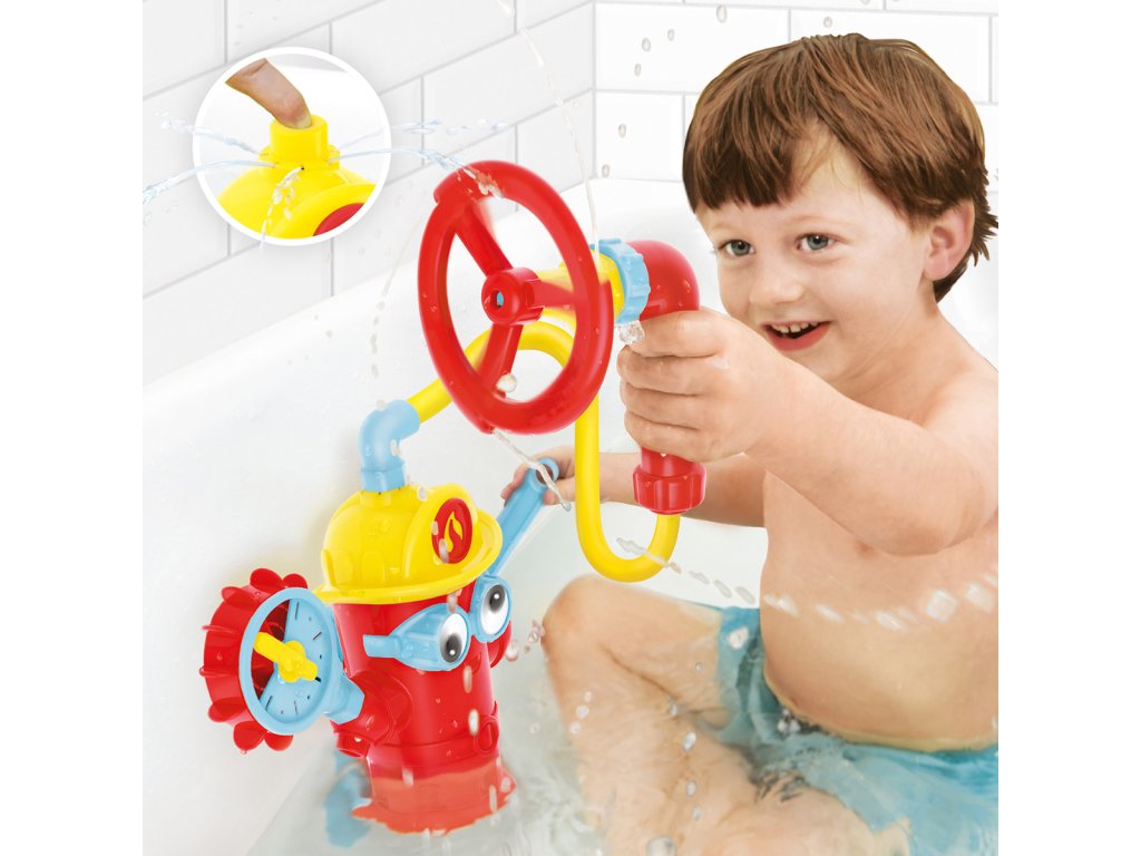 Umístěte hydrant do vany naplněné vodou. Ujistěte se, že je spodní část hydrantu ponořena alespoň 5 cm pod vodou. Připojte hasičské příslušenství k helmě nebo k hadici a zatáhněte za spouštěcí páku. Odměnou vám budou fantastické vodní efekty: rozprašovací tryska, točící se požární uzávěr, stříkající vodoměr. Ucpěte Freddyho helmu prstem ještě pro bláznivější vodní efekt rozstřikování!