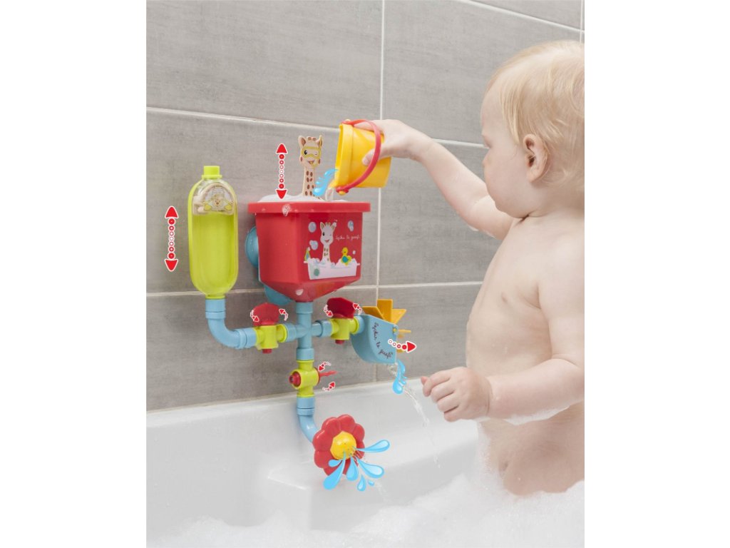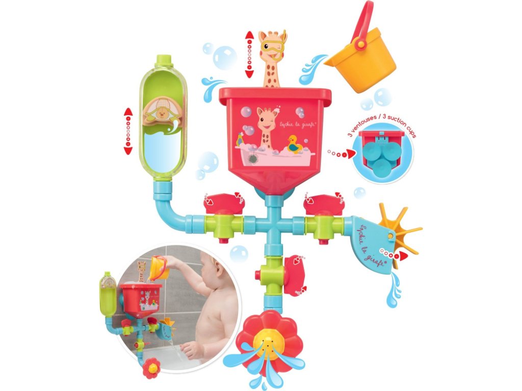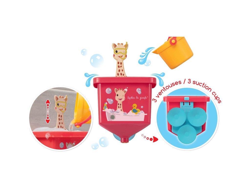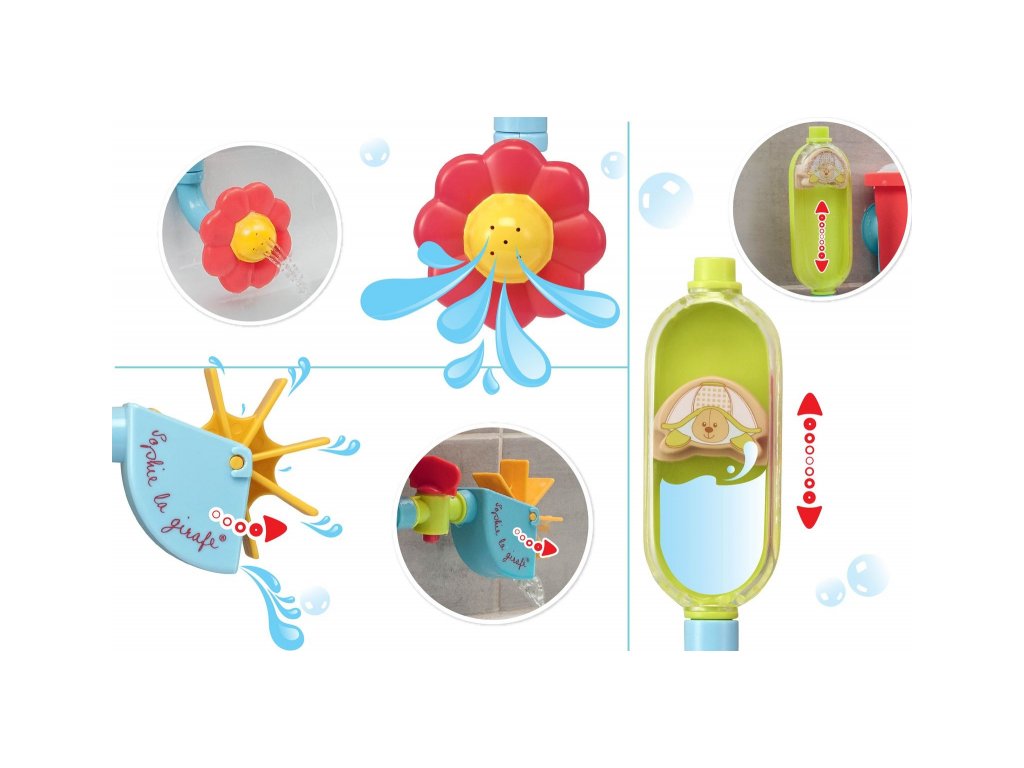 Při zavření všech 3 vodovodních kohoutků voda naplní hlavní nádržku a objeví se žirafa Sophie se svou potápěčskou maskou!