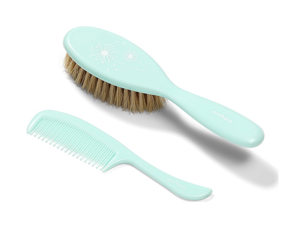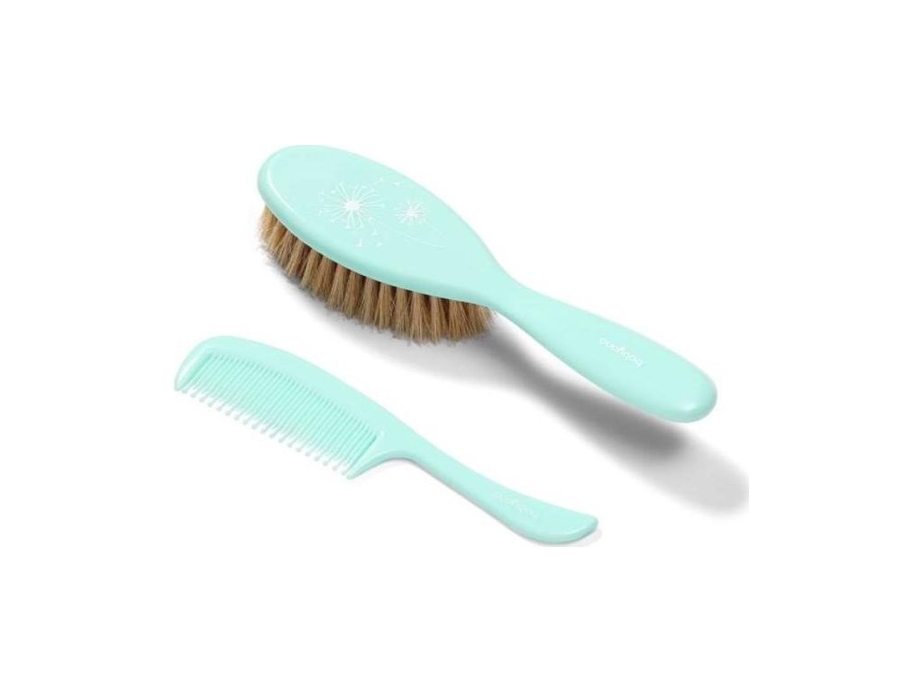 Kartáček a hřeben na vlasy. Kartáček s měkkými naturální štětinkami je určena na masírování hlavičky kojence a ošetřování jeho prvních vlásků. Obsahuje měkké zaoblené tvary, štětinky nedráždí a neelektrizují pokožku. Správné masírování hlavičky kartáčkem posiluje vlasy a urychluje jejich růst.