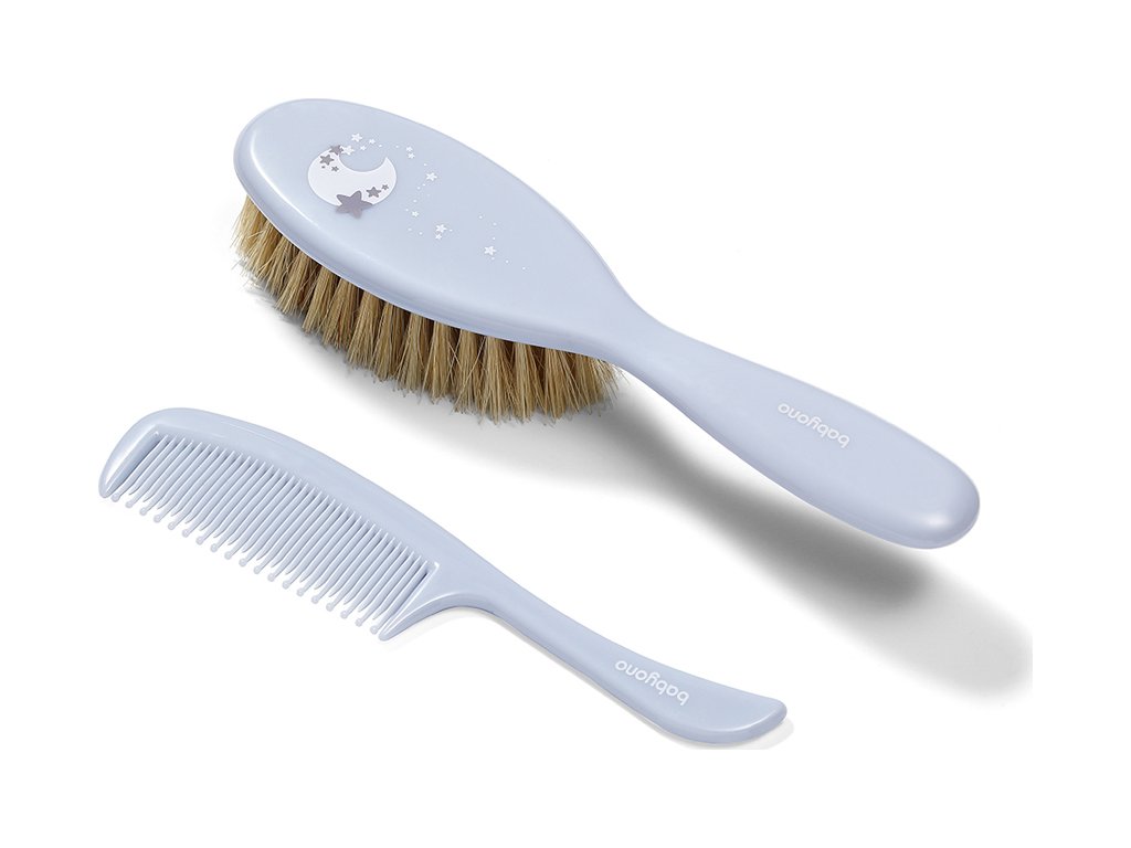 Kartáček a hřeben na vlasy. Kartáček s měkkými naturální štětinkami je určena na masírování hlavičky kojence a ošetřování jeho prvních vlásků. Obsahuje měkké zaoblené tvary, štětinky nedráždí a neelektrizují pokožku. Správné masírování hlavičky kartáčkem posiluje vlasy a urychluje jejich růst.