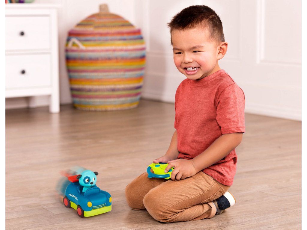 Autíčko pro nejmenší řidiče a řidičky má jednoduché ovládání díky jedinému tlačítku na ovladači. Jedním tlačítkem se ovládá jízda dopředu, druhým tlačítkem otáčení o 360°. Po zmáčknutí řidiče v podobě pejska se ozvou 4 legrační zvuky.