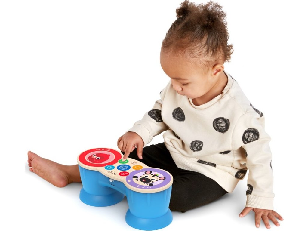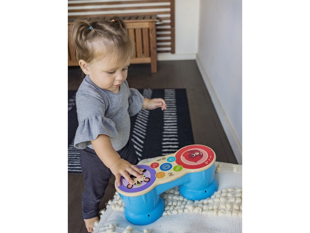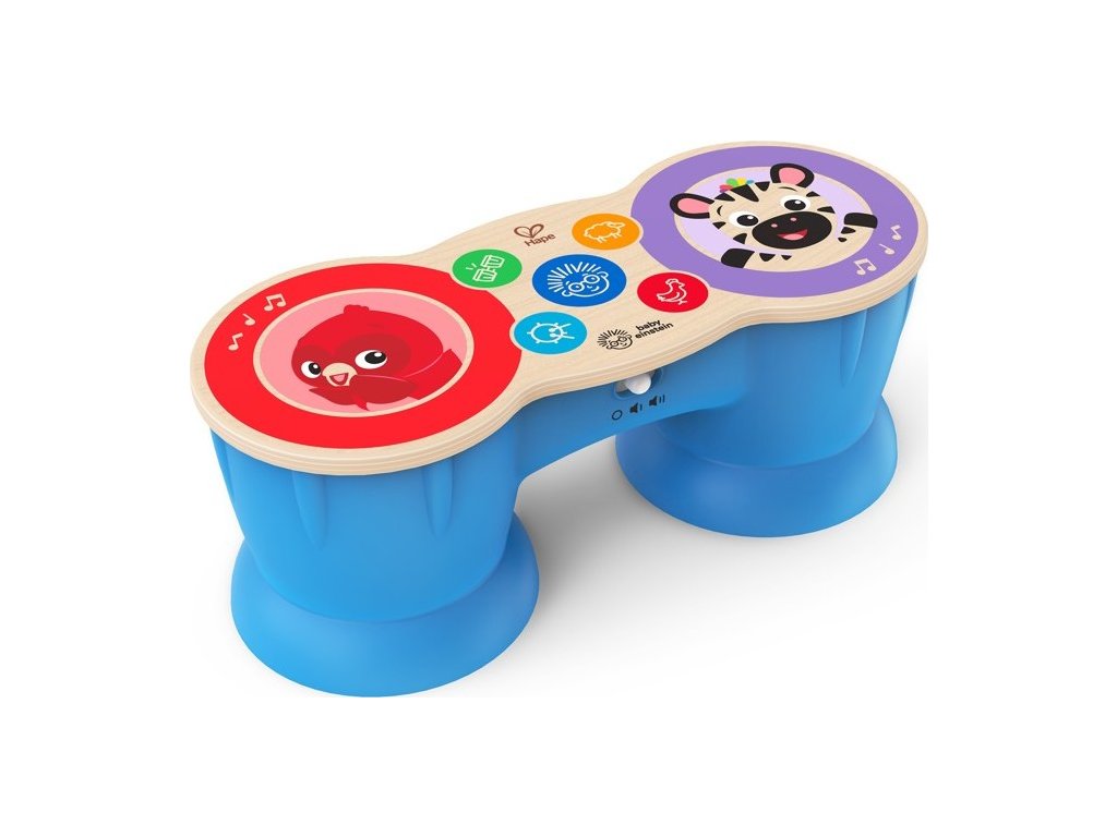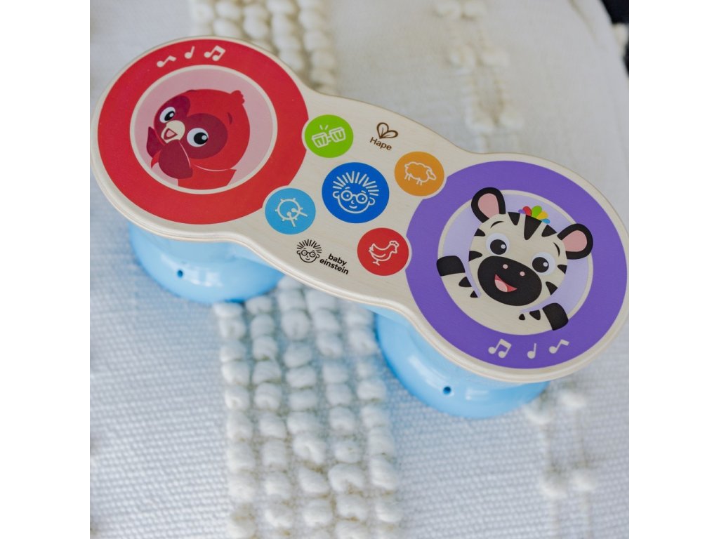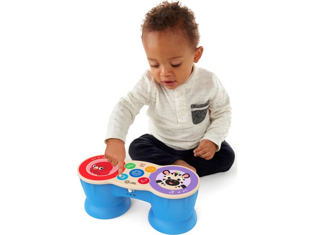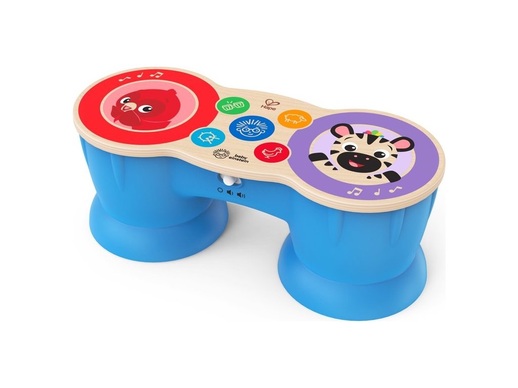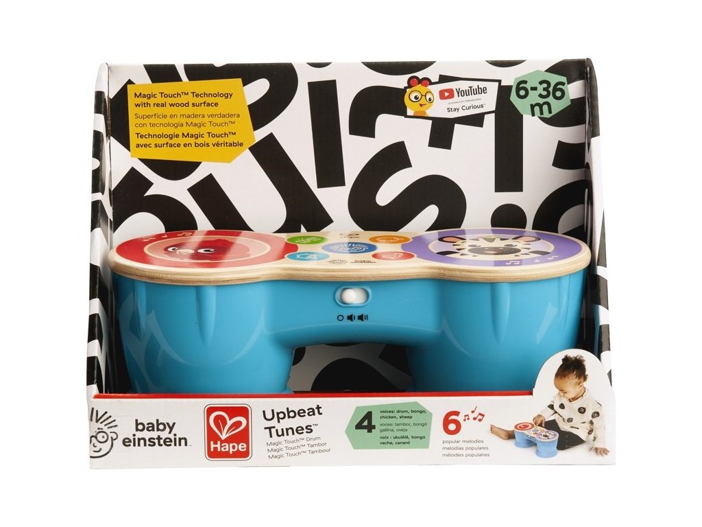 Vychutnejte si vzrušující hudební rytmy spolu s dítětem a bubny Baby Einstein™ Upbeat Tunes™ Magic Touch™. S technologií Magic Touch™ může vaše dítě snadno objevovat klasické melodie na bubnu z pravého dřeva a přepínat mezi bongy, bubny, zvuky kuřátek a oveček. Děti ve věku od 6 měsíců mohou najít svůj rytmus a hrát své vlastní písničky, nebo stisknutím Einsteinova tlačítka aktivovat 6 nastavených populárních melodií. Tato hračka batolatům pomáhá rozvíjet motorické dovedností a tvůrčí sebevyjádření.