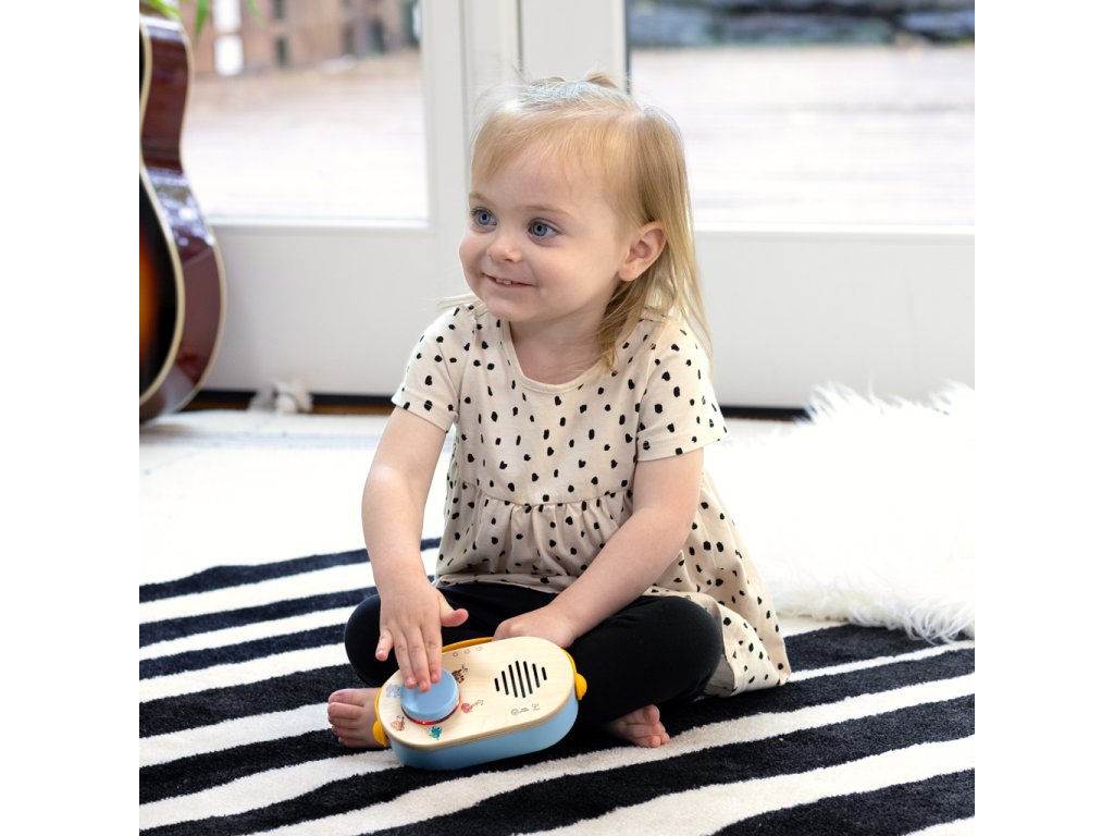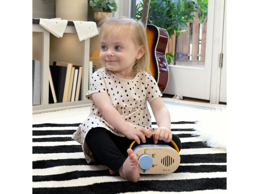Nalaďte se na rozvoj jemné motoriky a zjišťování příčin a následků s rádiem Baby Einstein + Hape Discovery Radio Toy Radio. S více než 40 melodiemi a zvuky se dítě může zapojit do učení se ve skutečném světě, když si užívají barevná světla, objevují 12 zvláštních zvuků zvířat a džemují své oblíbené melodie pokaždé, když otočí ovladačem na této poutavé hračce do ruky. Toto hračkářské rádio inspirované montessori, vyrobené ze dřeva s certifikátem FSC, povzbuzuje dítě k objevování nových zvuků, když otáčí a mačká otočný ovladač. Malé a snadno uchopitelné rádio má klasický design a flexibilní popruh, který pomáhá dítěti objevovat i na cestách. Nabízí nízkou a vysokou úroveň hlasitosti pro pohodlí dítěte a klid rodičů.