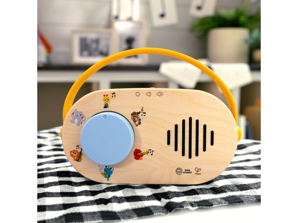 - Rádio Baby Einstein + Hape Discovery Radio je multisenzorická hudební hračka inspirovaná Montessori, která pomáhá dětem ve věku 6 měsíců a více objevovat každodenní zvuky, hudbu a světla.