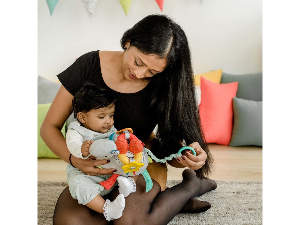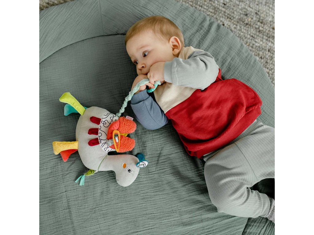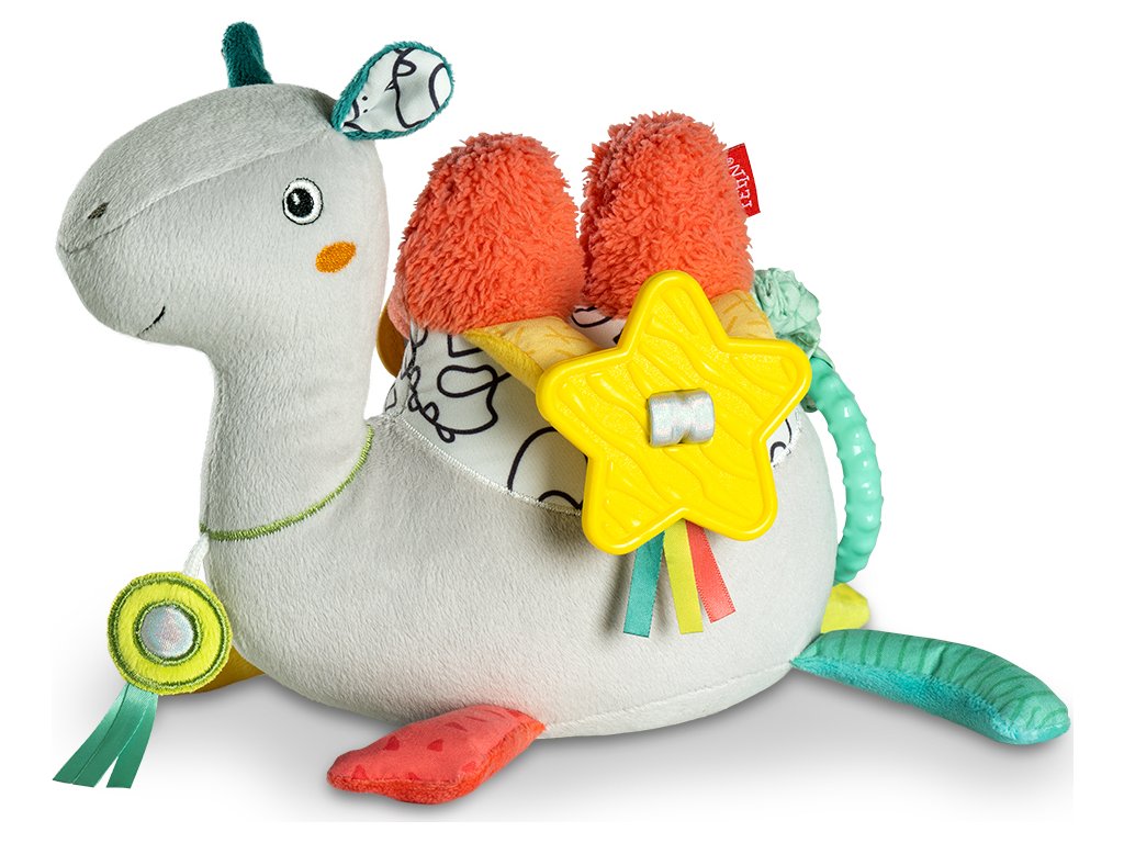 Hracího velblouda si vaše děťátko okamžitě zamiluje ať už jako mazlícího nejlepšího kamaráda nebo díky uklidňující melodii " Brahms Lullaby". Po natažení hudební mechaniky zazní oblíbená ukolébavka – melodie s příjemnou hlasitostí a tóny ukolébá vaše děťátko ke spánku. Bezpečné zrcátko pomáhá trénovat sebevědomí.