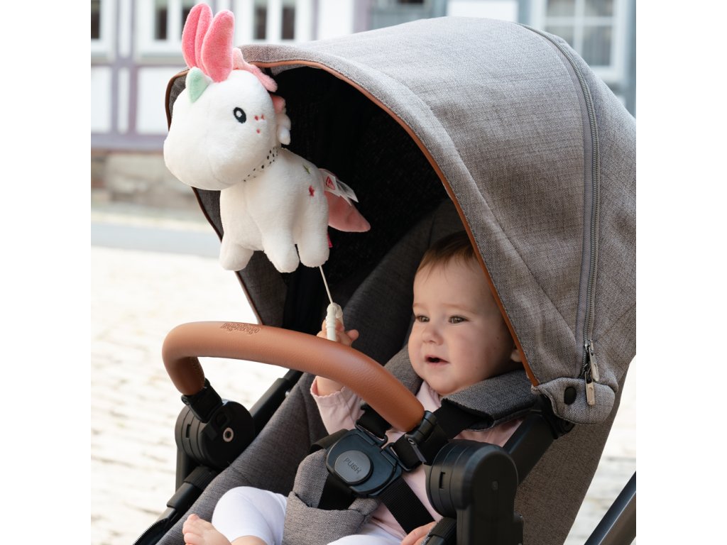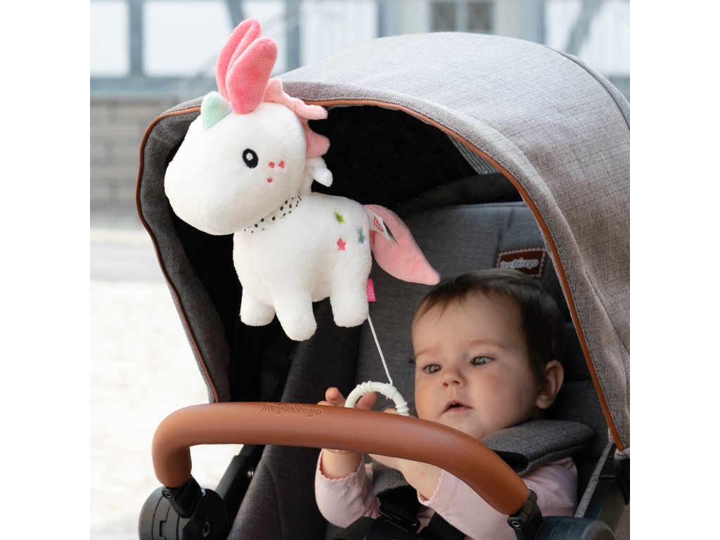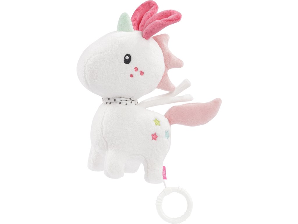 Roztomilý jednorožec z kolekce Aiko & Yuki je nejen věrným společníkem, ale uklidňuje a utěšuje svou příjemnou ukolébavkou.