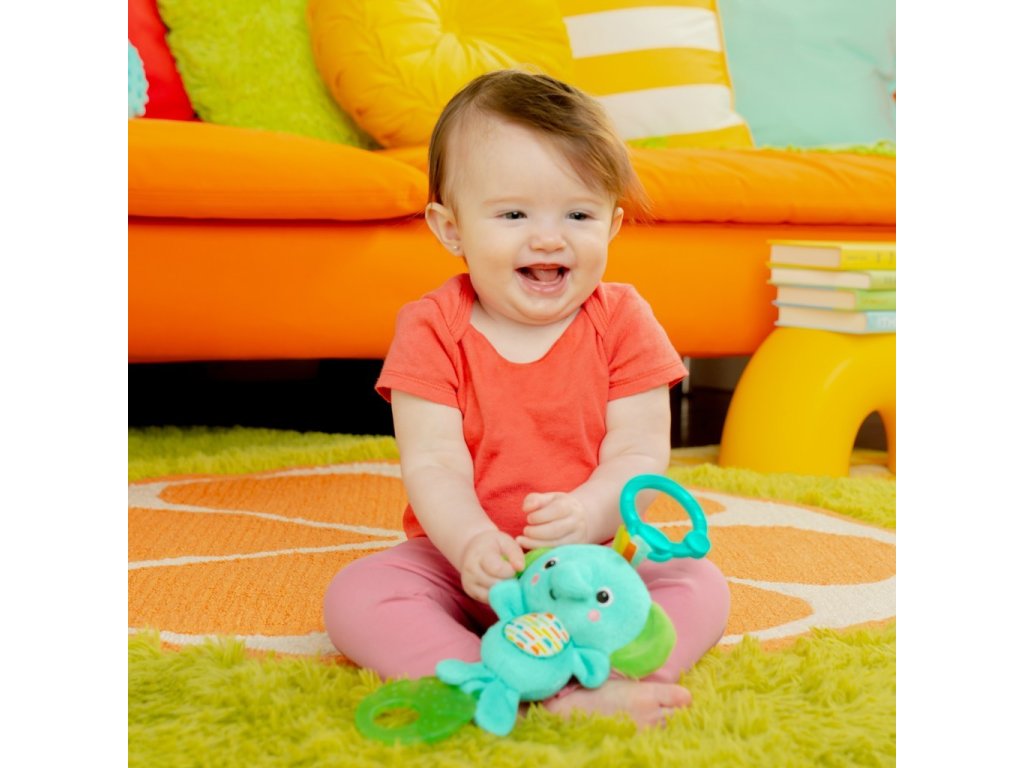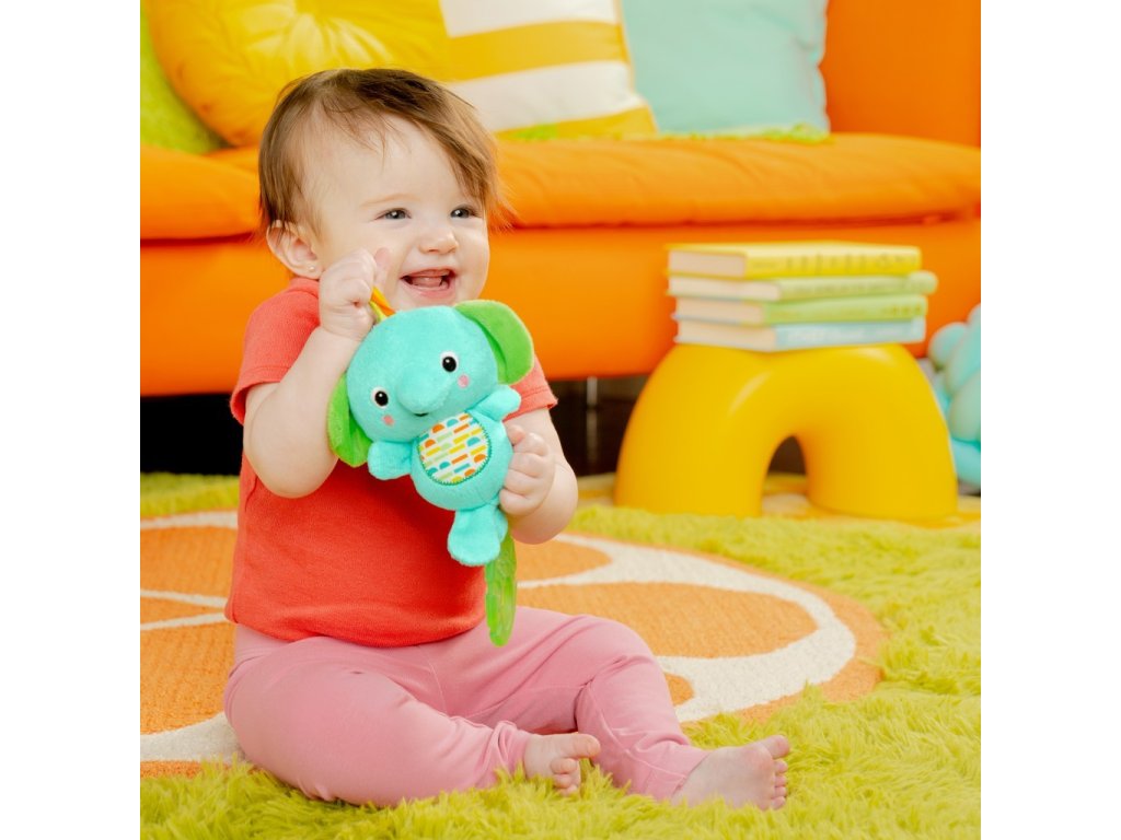 Když miminko zatáhne za zelený list, jeho kamarád z džungle zahraje 4 různé melodie! Díky stimulujícím barvám, texturám a zvukům bude děťátko na svého nového sloního kamaráda sahat a chytat ho, zatímco vy si budete užívat sledování rozvoje nových dovedností hlavně během prvního roku dítěte.