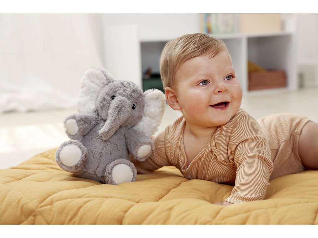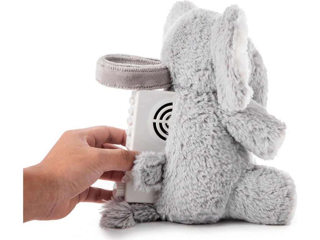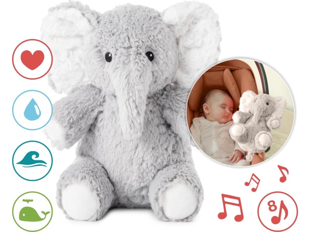 Usínáček v podobě neodolatelného plyšového slona Elliota s hudbou a relaxačními zvuky pomůže vašemu dítěti uklidnit se a snáze usnout. Hračka nabízí 4 melodie a 4 uklidňující přírodní zvuky (déšť, tlukot srdce, vlny, velrybí píseň). Menší verze hračky v podobě slona Elliota je ideální i na cesty, na dovolenou či na víkend u prarodičů.