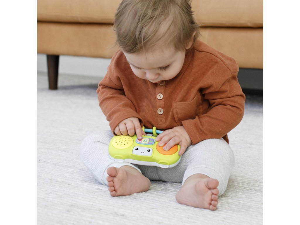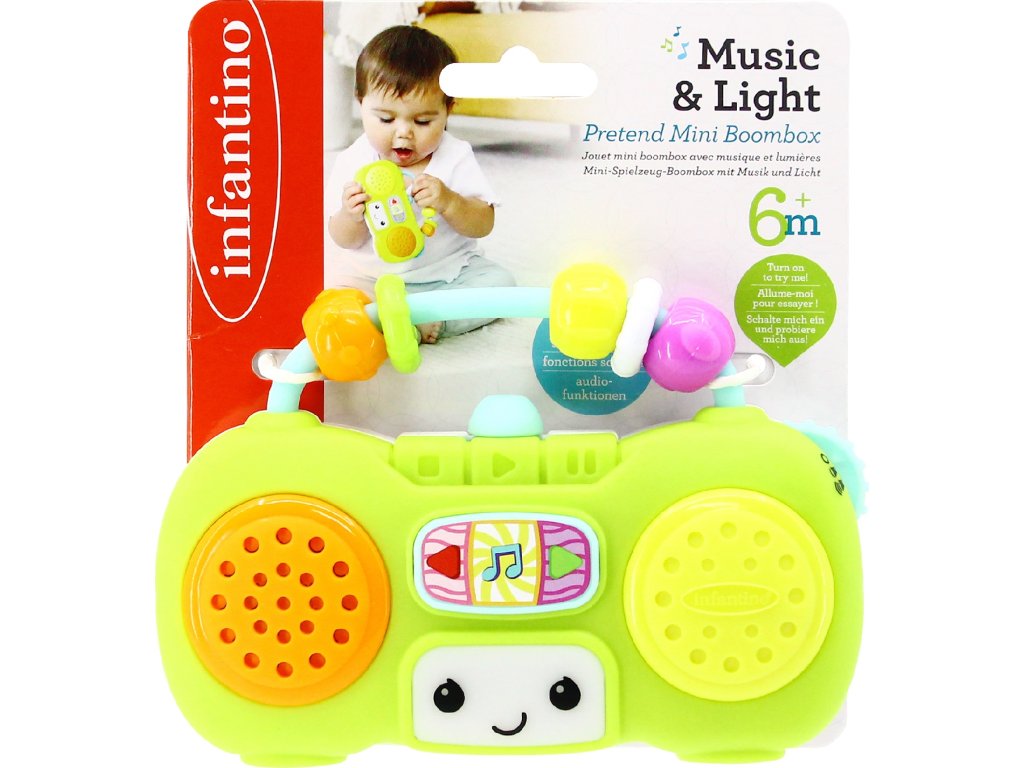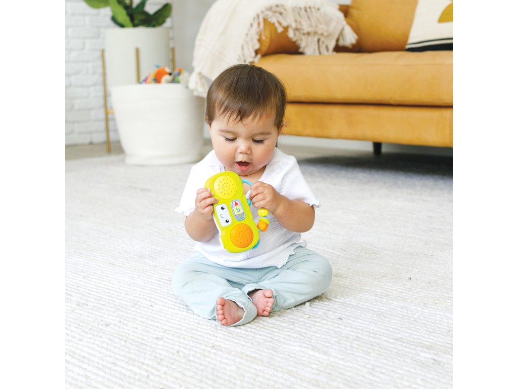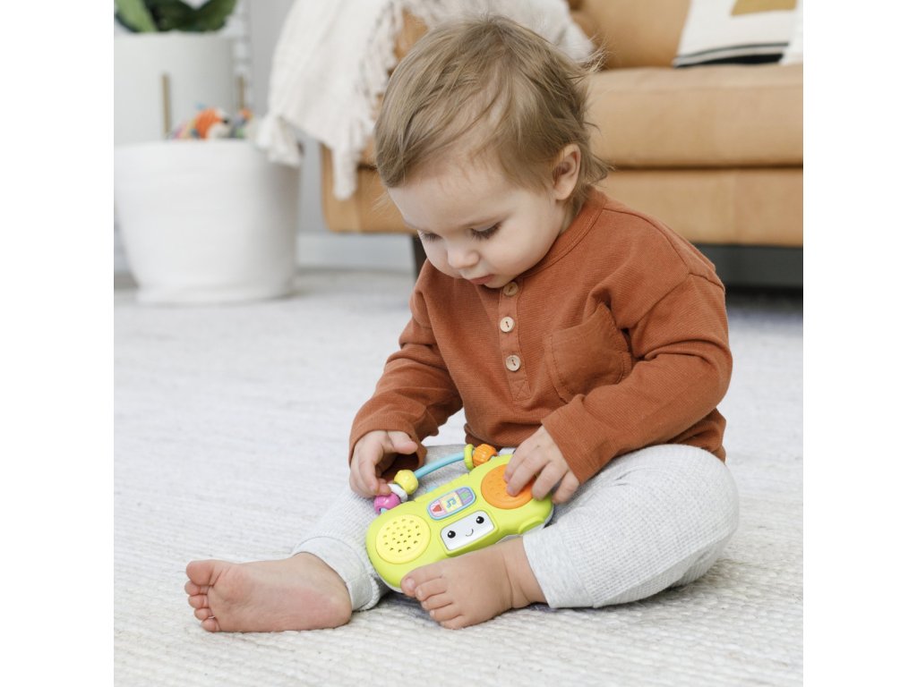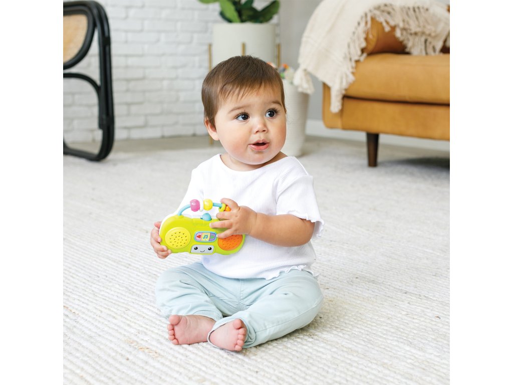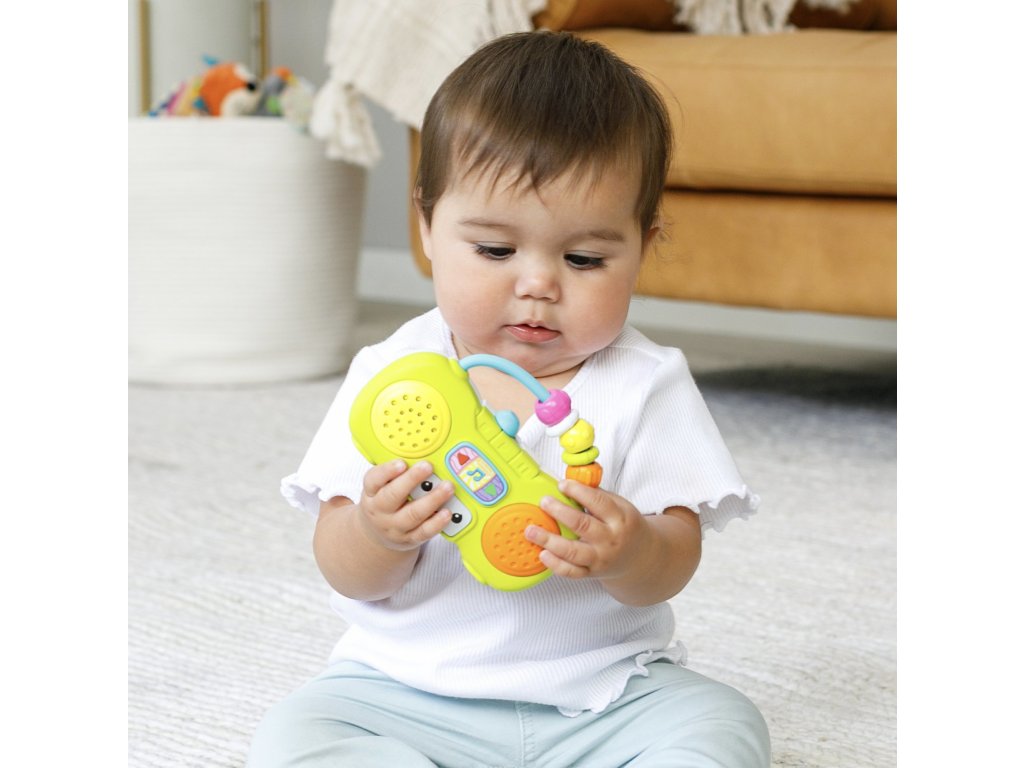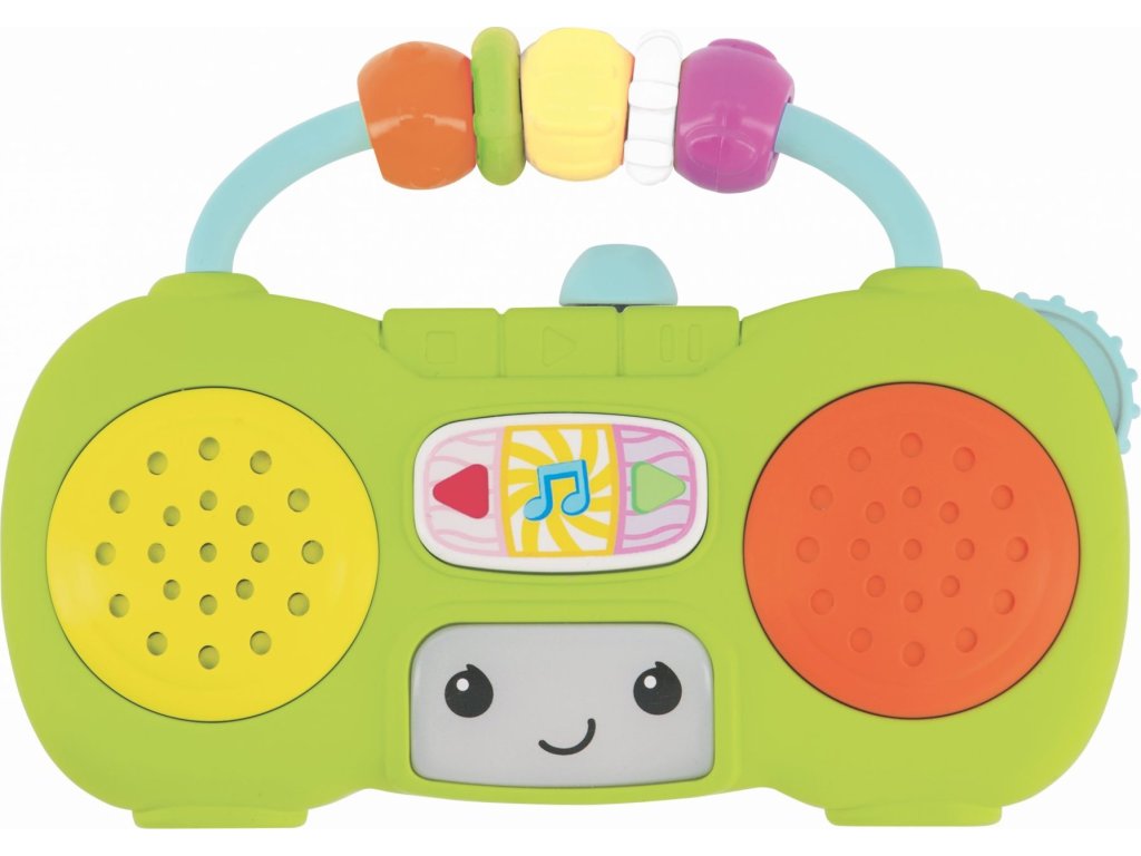 Veselé první rádio pro vaše dítě hraje po zmáčknutí tlačítka 5 různých melodií. Pozornost dítěte upoutá blikající světýlko i pohyblivé korálky na rukojeti. Rodiče potěší možnost nastavení hlasitosti. Držadlo usnadňuje přenášení hračky.